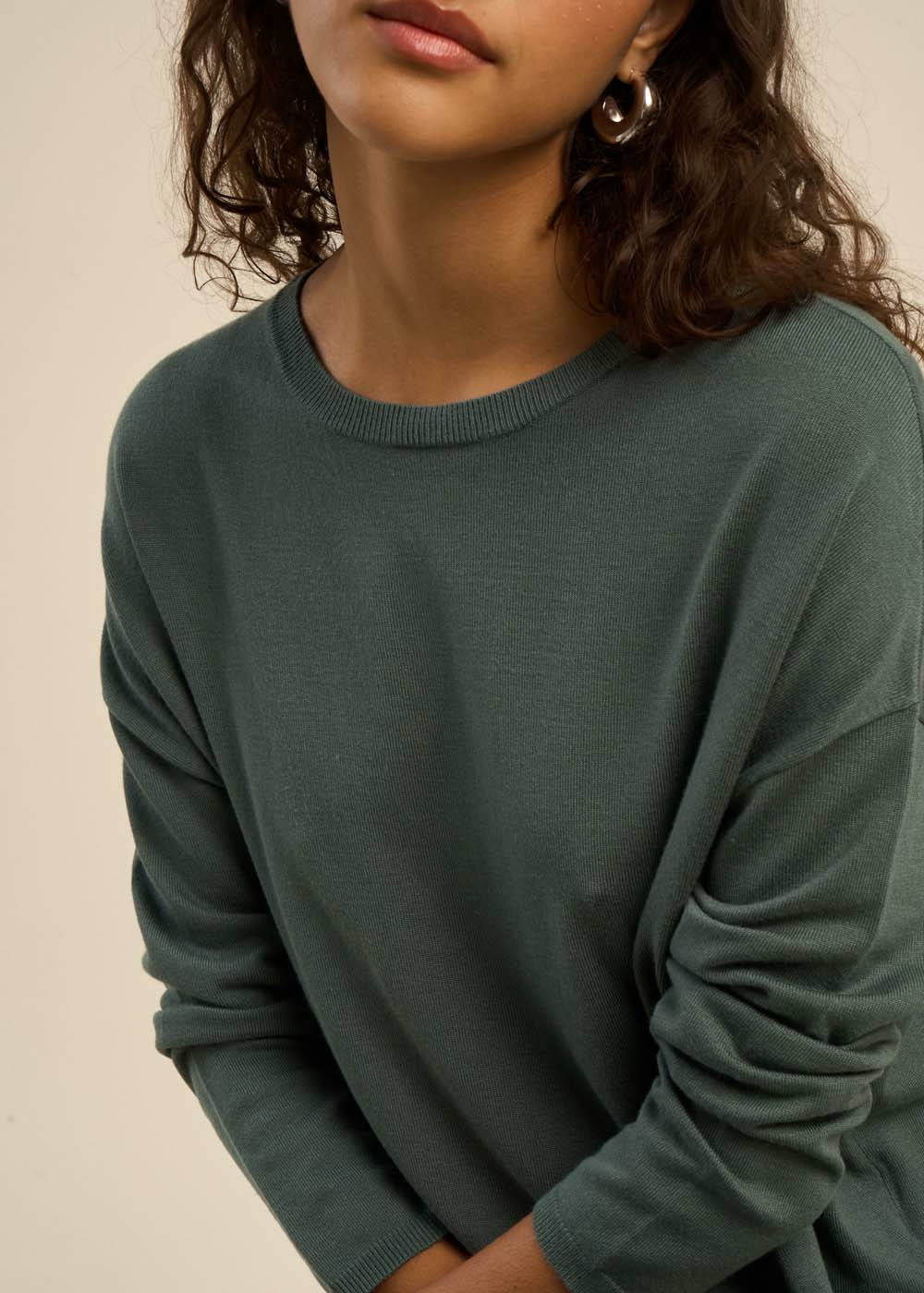 Le pull MONANOU est une pièce élégante et intemporelle, parfaite pour compléter une garde-robe moderne. Sa coupe ample et ses épaules tombantes offrent une allure fluide et sophistiquée. Confectionné en fine jauge dans une matière en viscose unie, il allie confort et légèreté. Doté d’un col bateau et de manches longues, il incarne le parfait équilibre entre simplicité et raffinement.