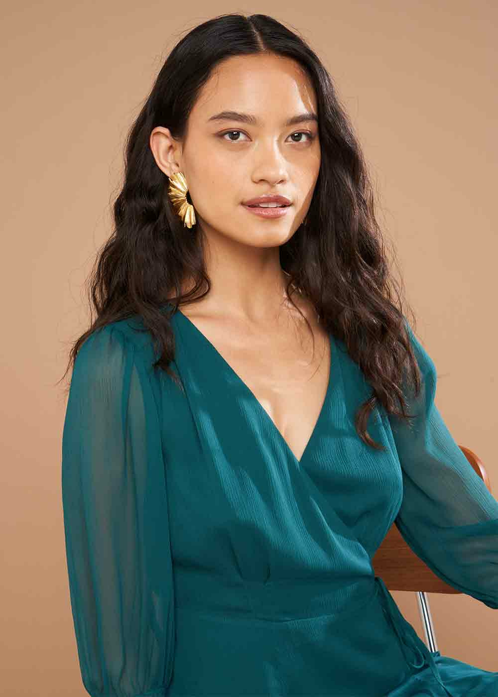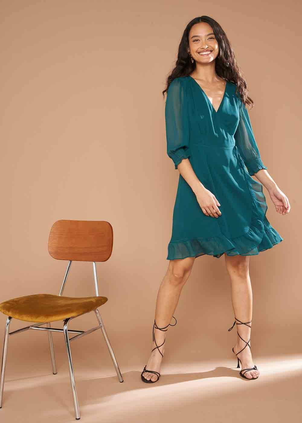 La ROKIMA est conçue pour vous offrir confort et élégance. Son décolleté cache-coeur mettra en valeur votre féminité tandis que les manches longues avec leur bas smocké ajoutent une touche de sophistication.