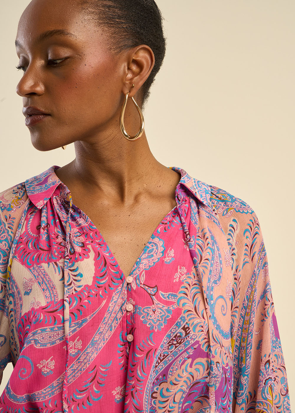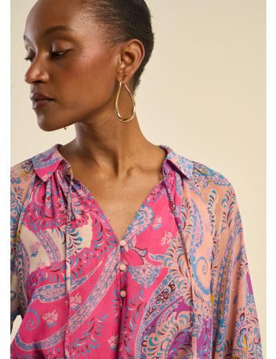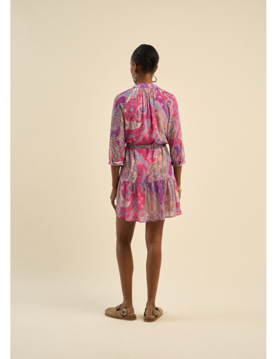 Légère et pleine de fraîcheur, la robe RAOMA est idéale pour les beaux jours. Sa coupe fluide et son imprimé coloré apportent une touche bohème et féminine à votre silhouette.