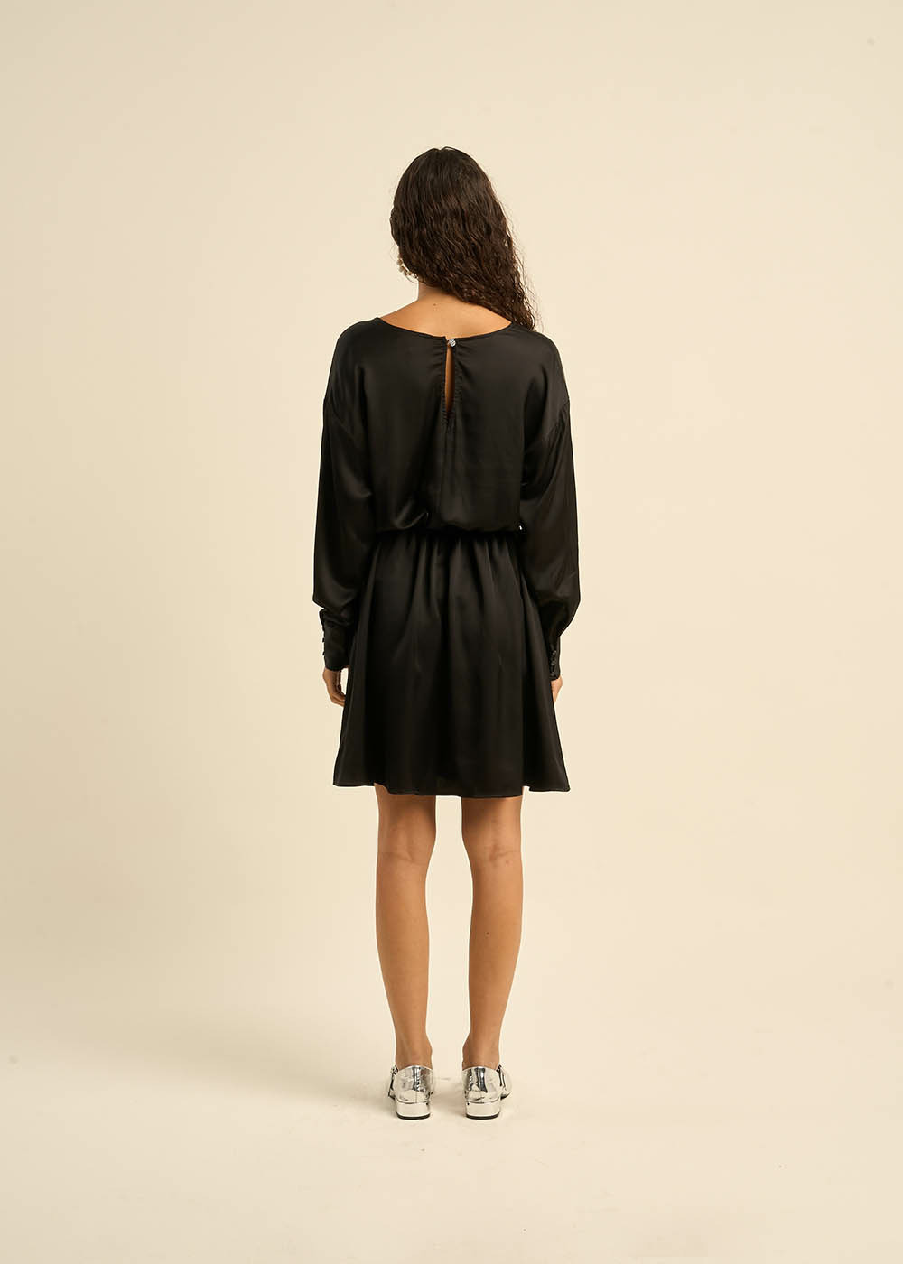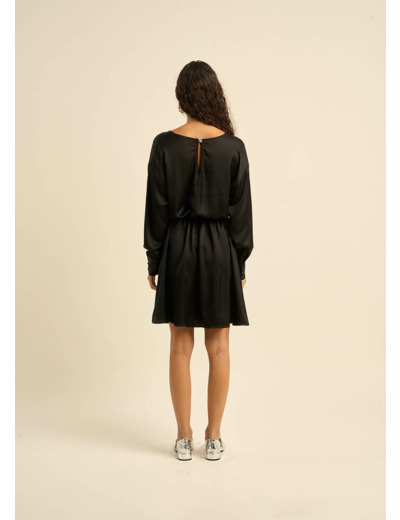 La robe courte RAOBI, votre alliée pour les soirées. Son satin de viscose fluide et soyeux, associé à une coupe élégante, en fait une pièce idéale pour les occasions spéciales. La ceinture à nouer souligne la taille et crée une silhouette féminine. L'ouverture dans le dos apporte une touche de séduction.