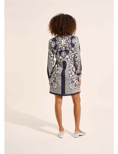 Féminine et élégante, la robe RAYAMA séduit par son imprimé foulard placé et sa coupe fluide. Une pièce forte et facile à porter, qui structure la silhouette tout en légèreté.