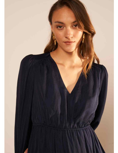 La robe RASCALOU présente une taille élastiquée pour une coupe flatteuse et confortable. Les manches longues avec leur poignet classique à trois boutons ajoutent une touche d'élégance intemporelle. Cette robe vous offrira un look sophistiqué et glamour tout en vous assurant un confort optimal.