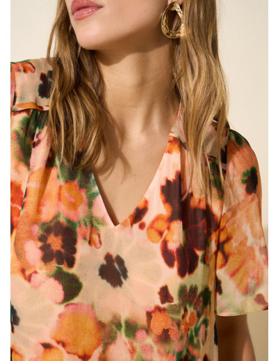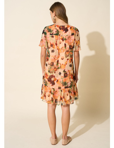 La robe REOMIA se démarque par son imprimé énergisant, avec une coupe droite et un décolleté en V. Complétez votre look en l'associant à une paire de sandales dorées.
