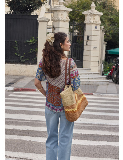 Adoptez l'esprit bohème et estival avec notre sac cabas SUNLIGHT, confectionné en raphia et orné d’un motif coucher de soleil aux tons chaleureux. Son design solaire apporte une touche de douceur et d’élégance à vos tenues estivales.