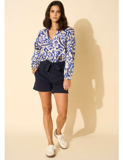 Le short PACHITO confectionné en 100% coton est doté d'une taille haute ajustable grâce à une ceinture assortie. Il présente des plis sur le devant pour une touche d'élégance et des jambes larges pour un confort optimal. Deux poches sur les côtés ajoutent à la fois praticité et style à ce short polyvalent.Portez-le avec un tee-shirt en lin et des sandales pour un look estival et tendance.