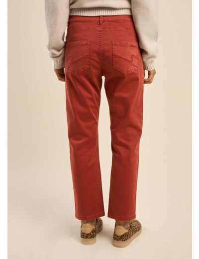 Le pantalon PASTELLIA offre une coupe slim flatteuse avec cinq poches fonctionnelles et une longueur 7/8 pour une silhouette moderne. Sa matière au toucher peau de pêche ajoute douceur et confort à cette pièce polyvalente.