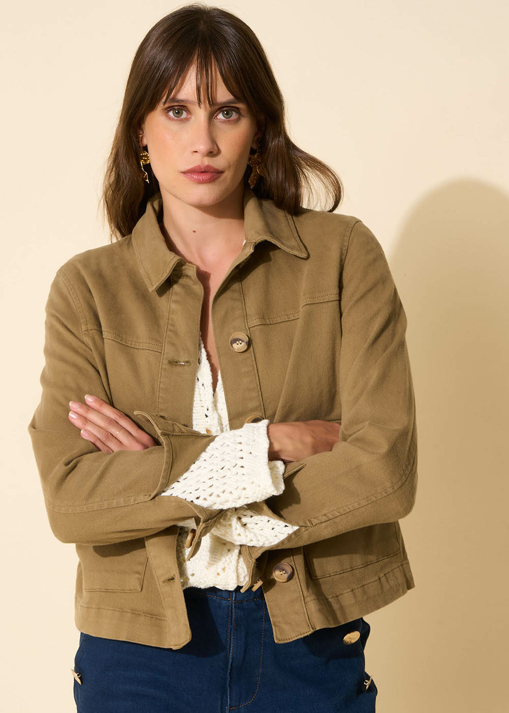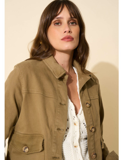 La veste VLORENCE est confectionnée en sergé de coton et présente un col chemise. Elle s'ouvre au