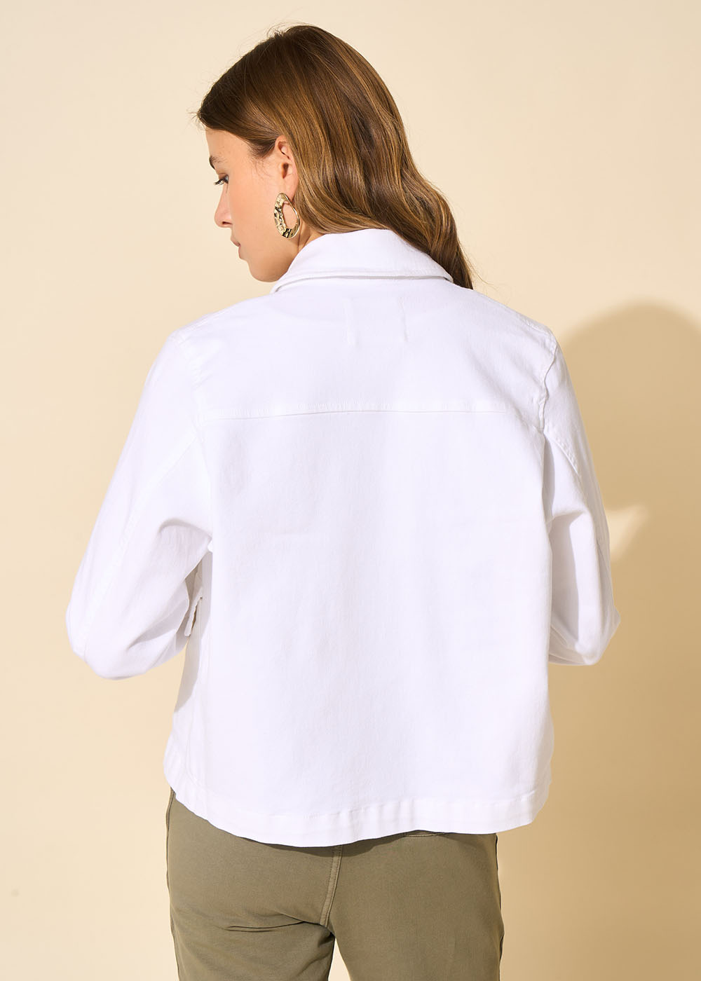 La veste VLORENCE est confectionnée en sergé de coton et présente un col chemise. Elle s'ouvre au