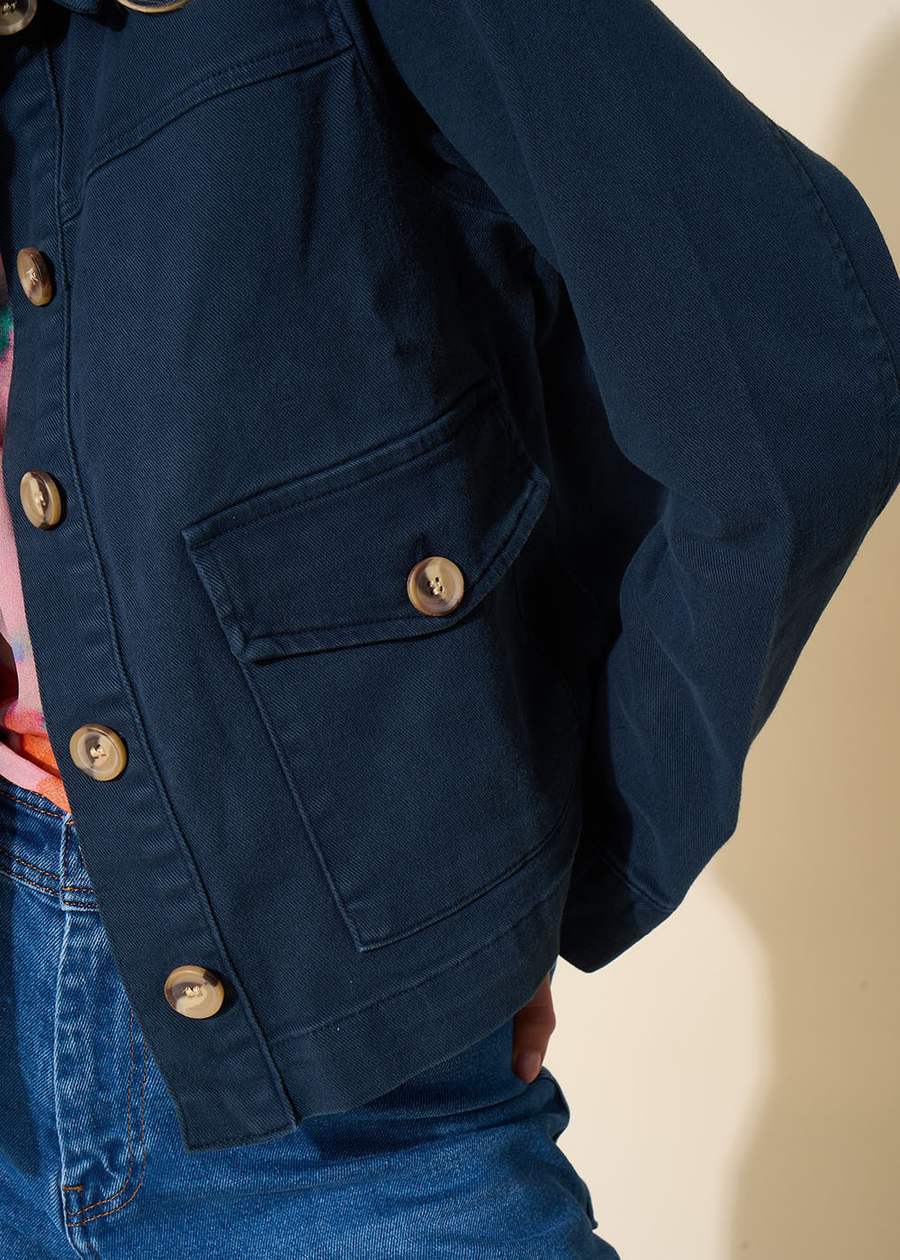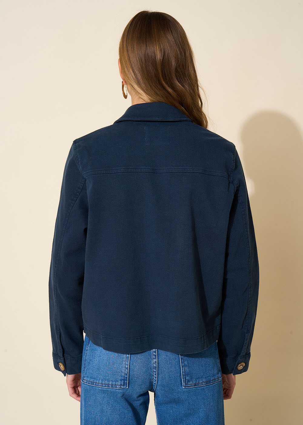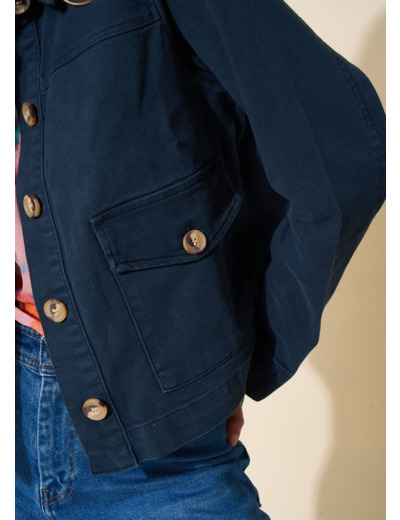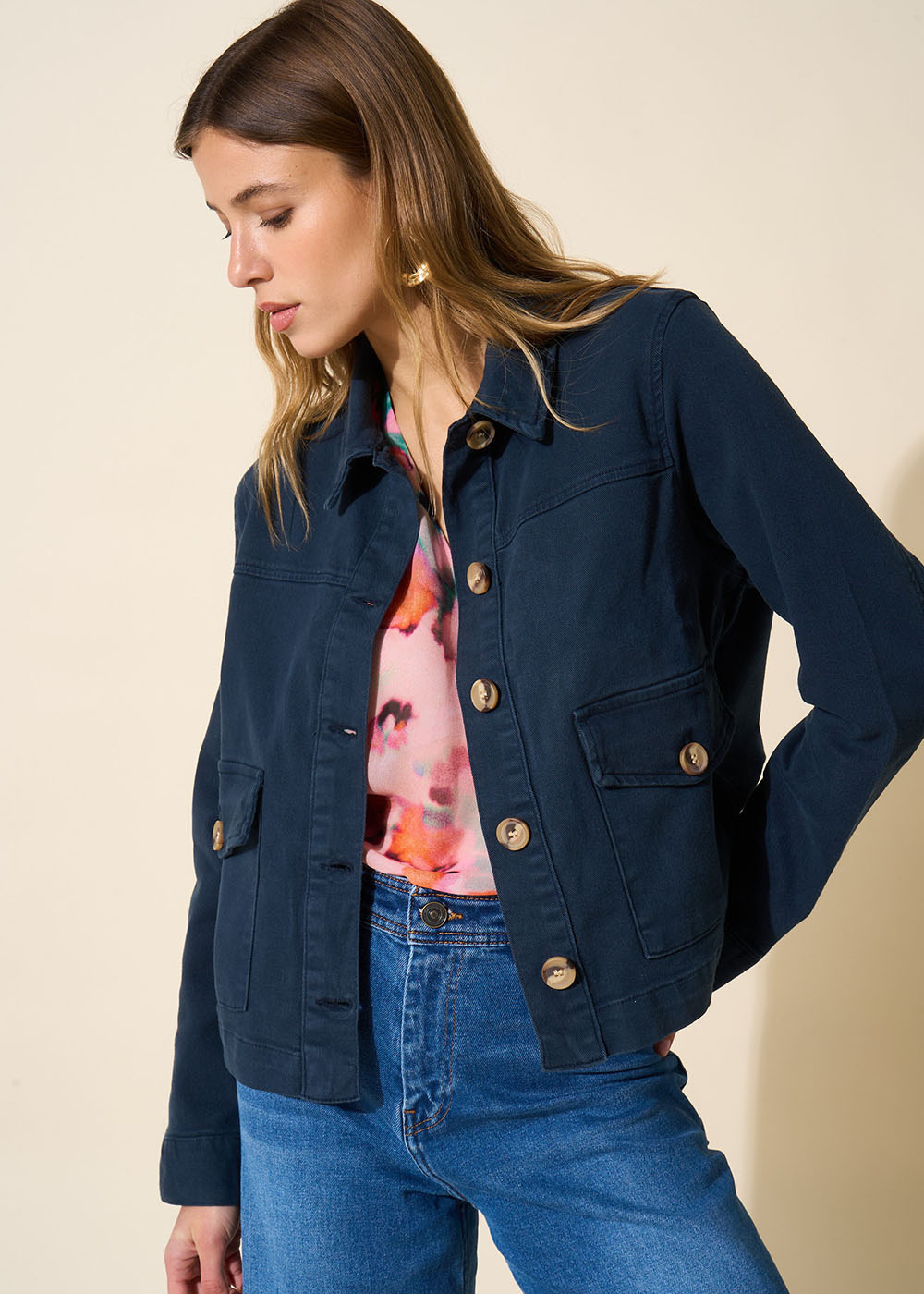 La veste VLORENCE est confectionnée en sergé de coton et présente un col chemise. Elle s'ouvre au