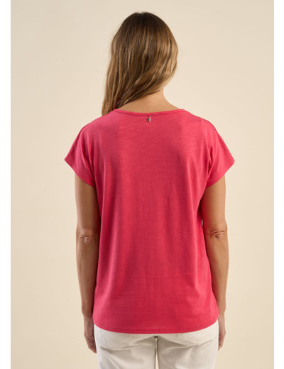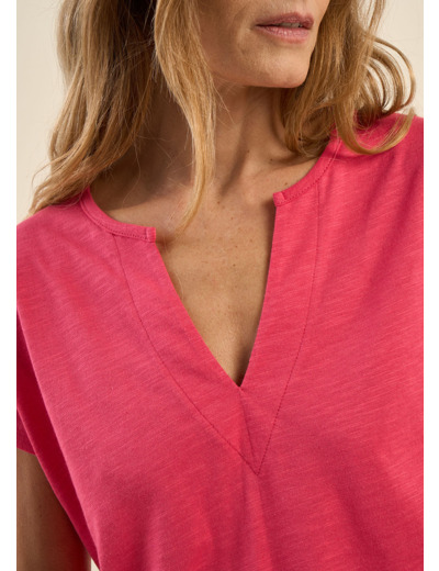 Le t-shirt TERA allie confort et style avec son col tunisien agrémenté d'une surpiqûre en V, apportant une touche moderne et raffinée. Ses manches courtes et son épaule tombante lui confèrent une coupe décontractée et élégante. Ce modèle simple et intemporel se porte aisément avec un jean ou un pantalon léger pour un look à la fois tendance et confortable.