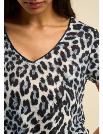 Le t-shirt TAJA allie audace et féminité avec son imprimé léopard revisité dans une teinte subtile et moderne. Confectionné en lin, il offre une légèreté et un confort incomparables, parfaits pour une allure décontractée et élégante. Son col V flatteur met en valeur le port de tête, tandis que ses manches courtes assurent une silhouette fluide et aérienne. La finition roulottée en lurex ton sur ton à l’encolure ajoute une touche de brillance discrète, idéale pour illuminer vos tenues du quotidien.