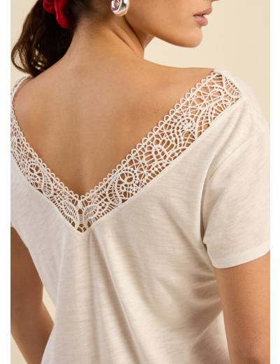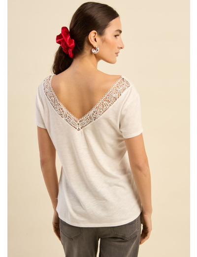 Le t-shirt TISTOU combine simplicité et élégance avec son col V et son décolleté dans le dos subtilement mis en valeur par une broderie rapportée. Confectionné dans une matière douce et légère, il assure un confort optimal tout au long de la journée. Ses manches courtes et sa coupe fluide en font une pièce facile à porter, idéale pour une allure à la fois décontractée et sophistiquée. Le détail de la broderie dans le dos apporte une touche délicate et raffinée. Il s’associe parfaitement avec un jean ou une jupe pour un look harmonieux et féminin.