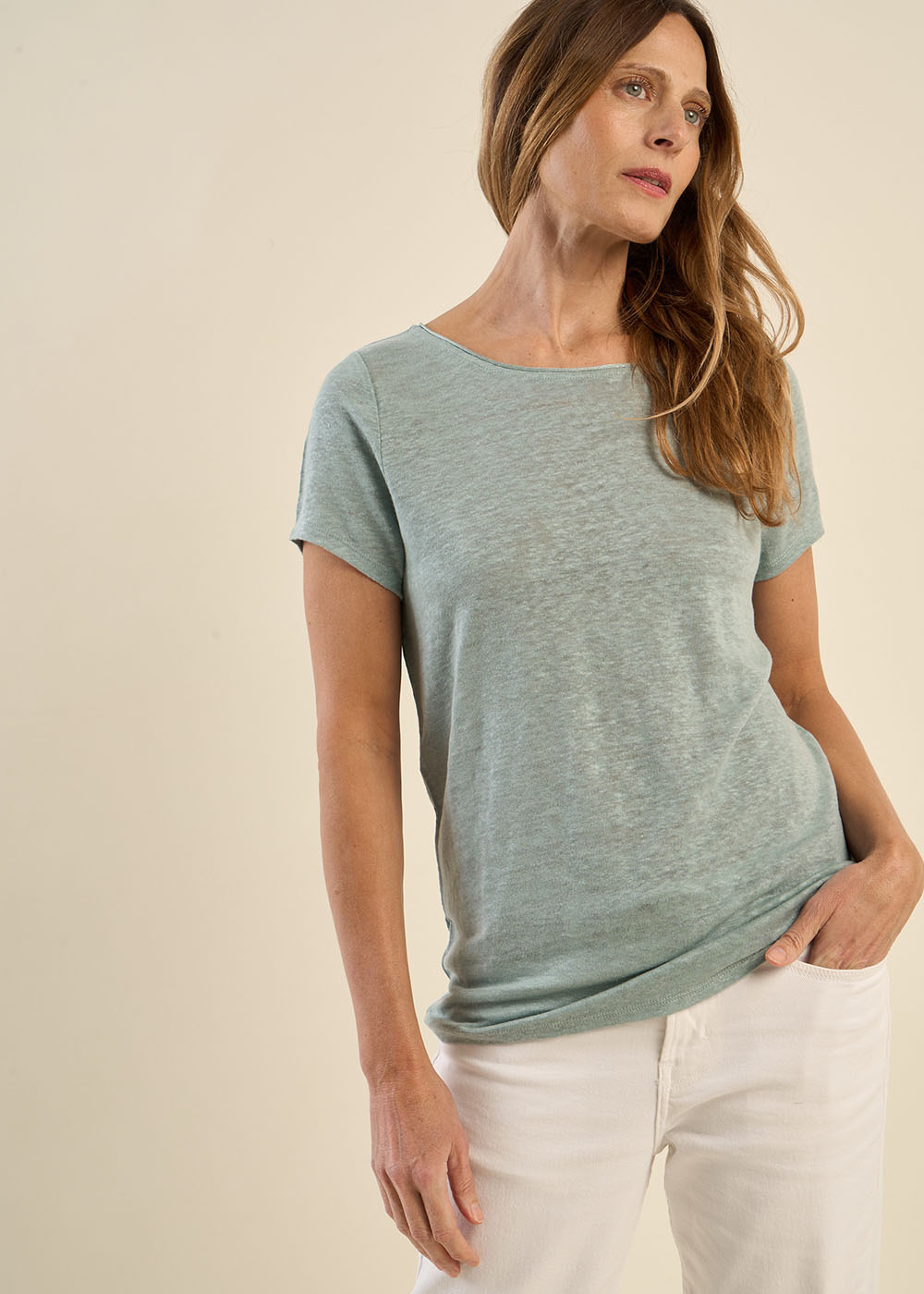 Le t-shirt TRECY est une pièce à la fois intemporelle et élégante, parfaite pour sublimer vos looks du quotidien. Confectionné en lin léger, il assure une sensation de fraîcheur et un tombé naturel. Son col bateau délicat est rehaussé d’un fin roulotté en lurex, ajoutant une touche lumineuse subtile. Ses manches courtes et sa coupe fluide offrent un confort absolu tout en apportant une allure moderne et raffinée. Facile à associer, il se porte aussi bien avec un jean qu’avec une jupe fluide pour une silhouette chic et décontractée.