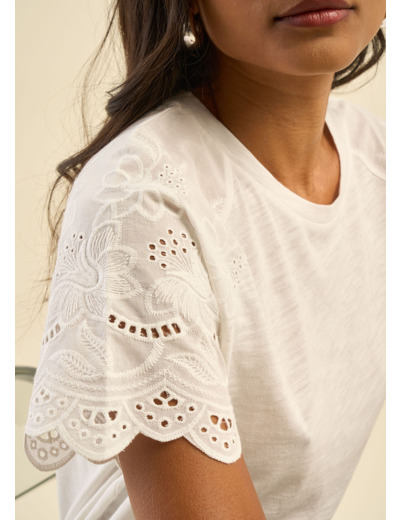 T-shirt manches raglan broderies anglaises