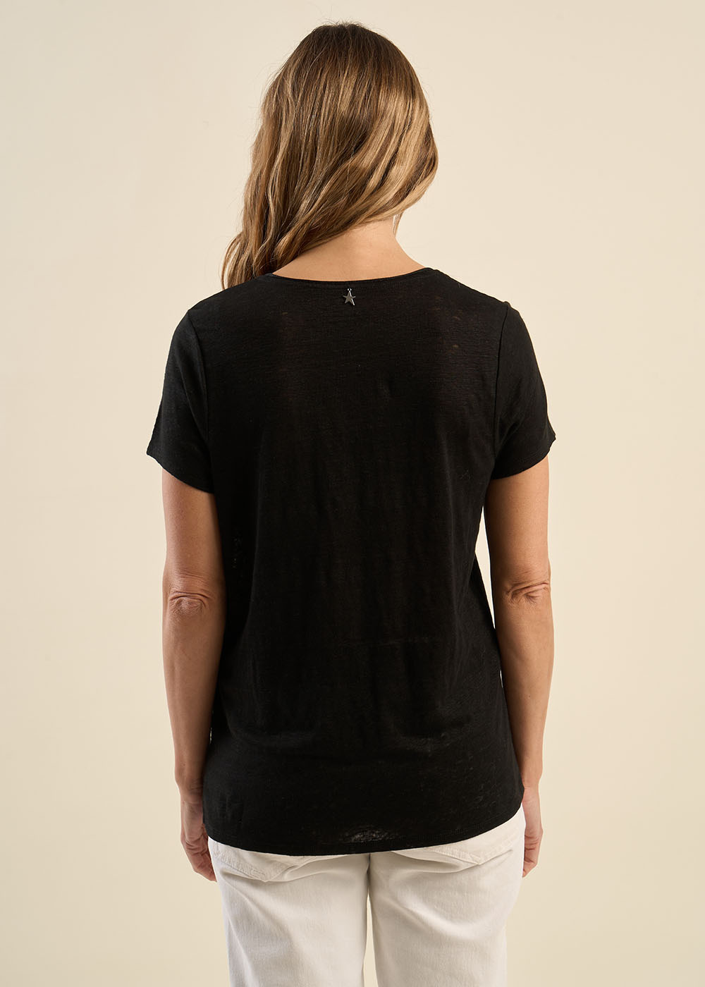 Le tee-shirt TIGROW s'impose comme le nouveau classique alliant simplicité et sophistication. Avec son col V et ses manches courtes il se distingue par une finition en lurex qui rehausse l'encolure d'une touche d'éclat. Polyvalent et élégant le TIGROW se marie aussi bien avec un tailleur décontracté qu'avec un jean.