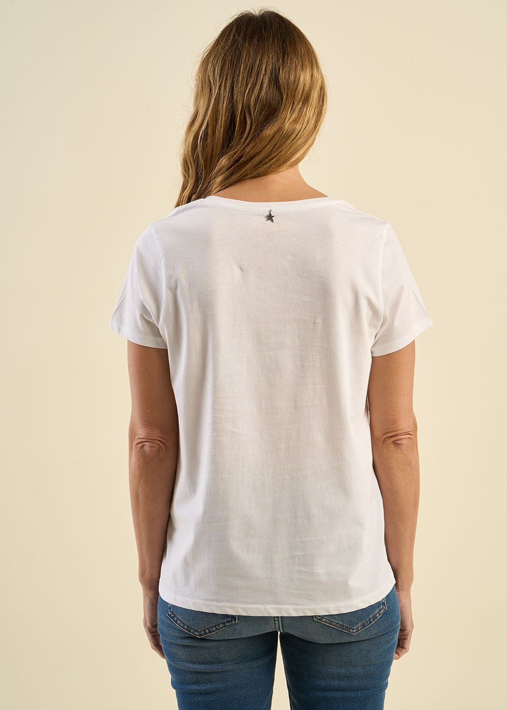 Le tee-shirt THELMA allie confort et style avec une élégance discrète. Avec ses manches courtes et son col V flatteur, il sublime toutes les silhouettes. Son détail signature, une étoile glitter ton sur ton délicatement apposée à la poitrine, ajoute une touche d'éclat subtile. Un essentiel polyvalent, parfait pour compléter vos tenues du quotidien.