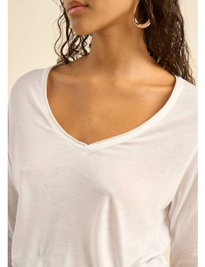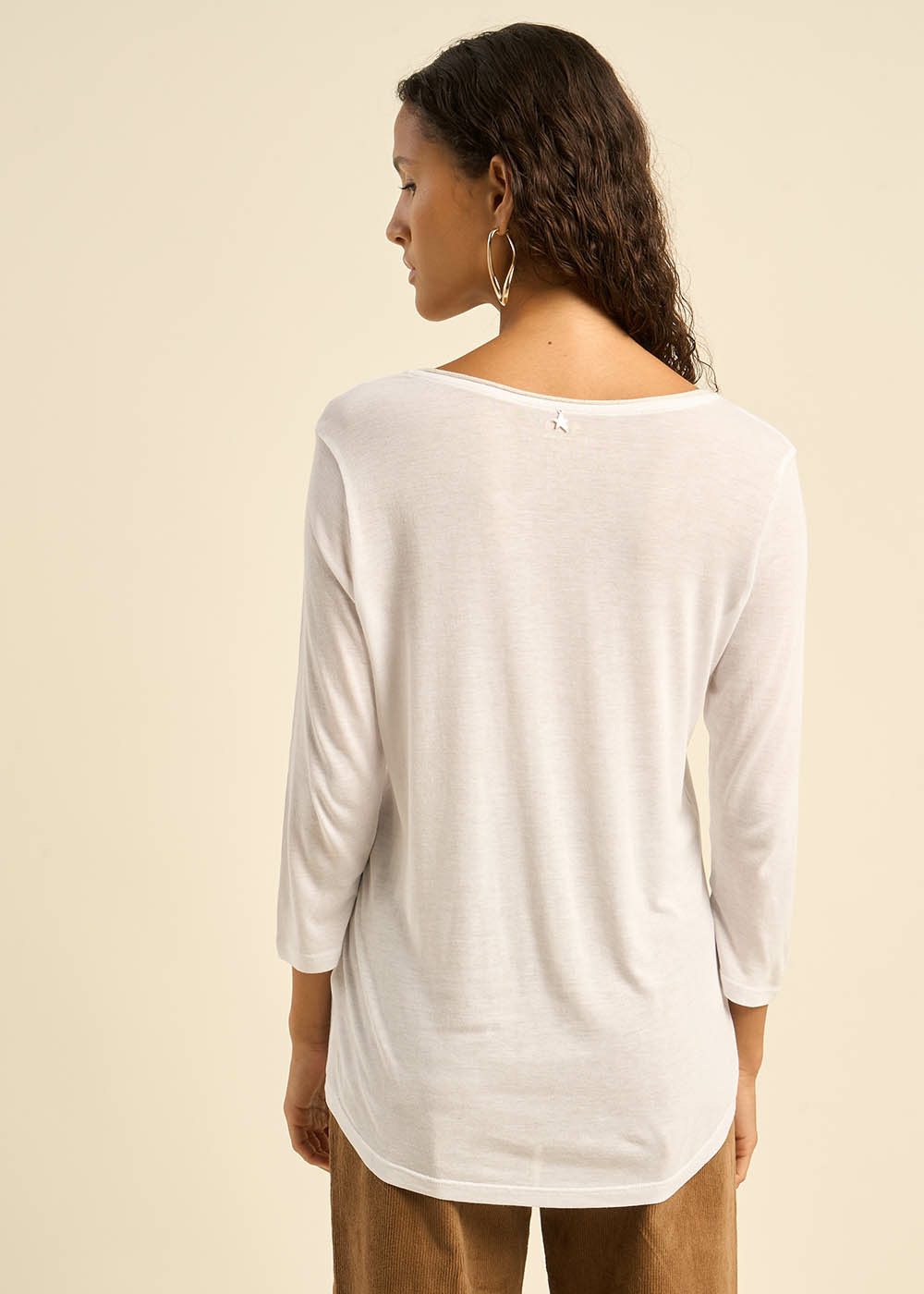 Le tee-shirt TASSIANE, l'allié parfait pour un quotidien chic. Sa matière, un mélange de viscose et de coton, est à la fois douce et légère. Le col en V et les manches 3/4 lui confèrent une allure intemporelle. Parfait pour toutes les occasions.