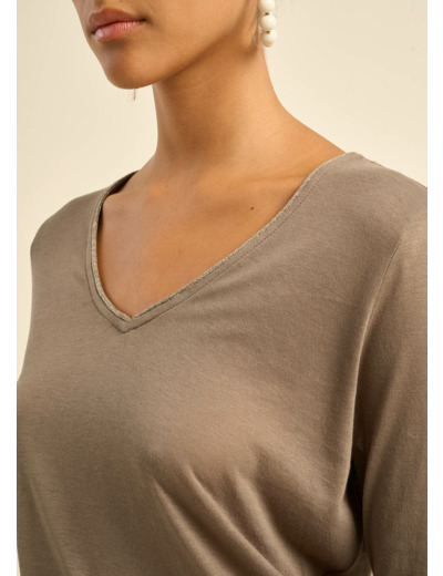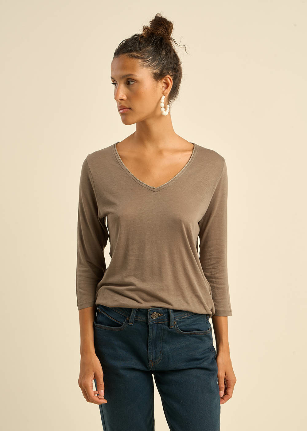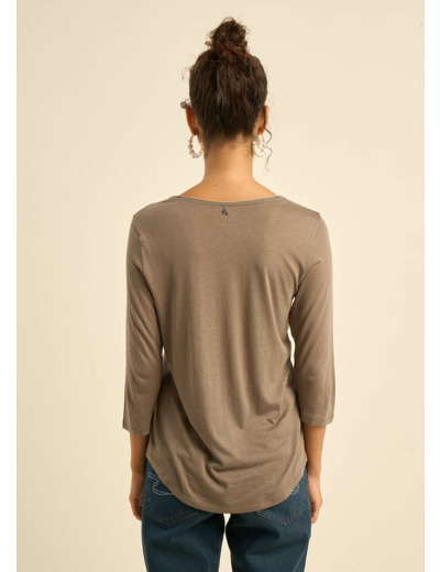 Le tee-shirt TASSIANE, l'allié parfait pour un quotidien chic. Sa matière, un mélange de viscose et de coton, est à la fois douce et légère. Le col en V et les manches 3/4 lui confèrent une allure intemporelle. Parfait pour toutes les occasions.
