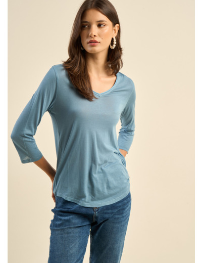 Le tee-shirt TASSIANE, l'allié parfait pour un quotidien chic. Sa matière, un mélange de viscose et de coton, est à la fois douce et légère. Le col en V et les manches 3/4 lui confèrent une allure intemporelle. Parfait pour toutes les occasions.
