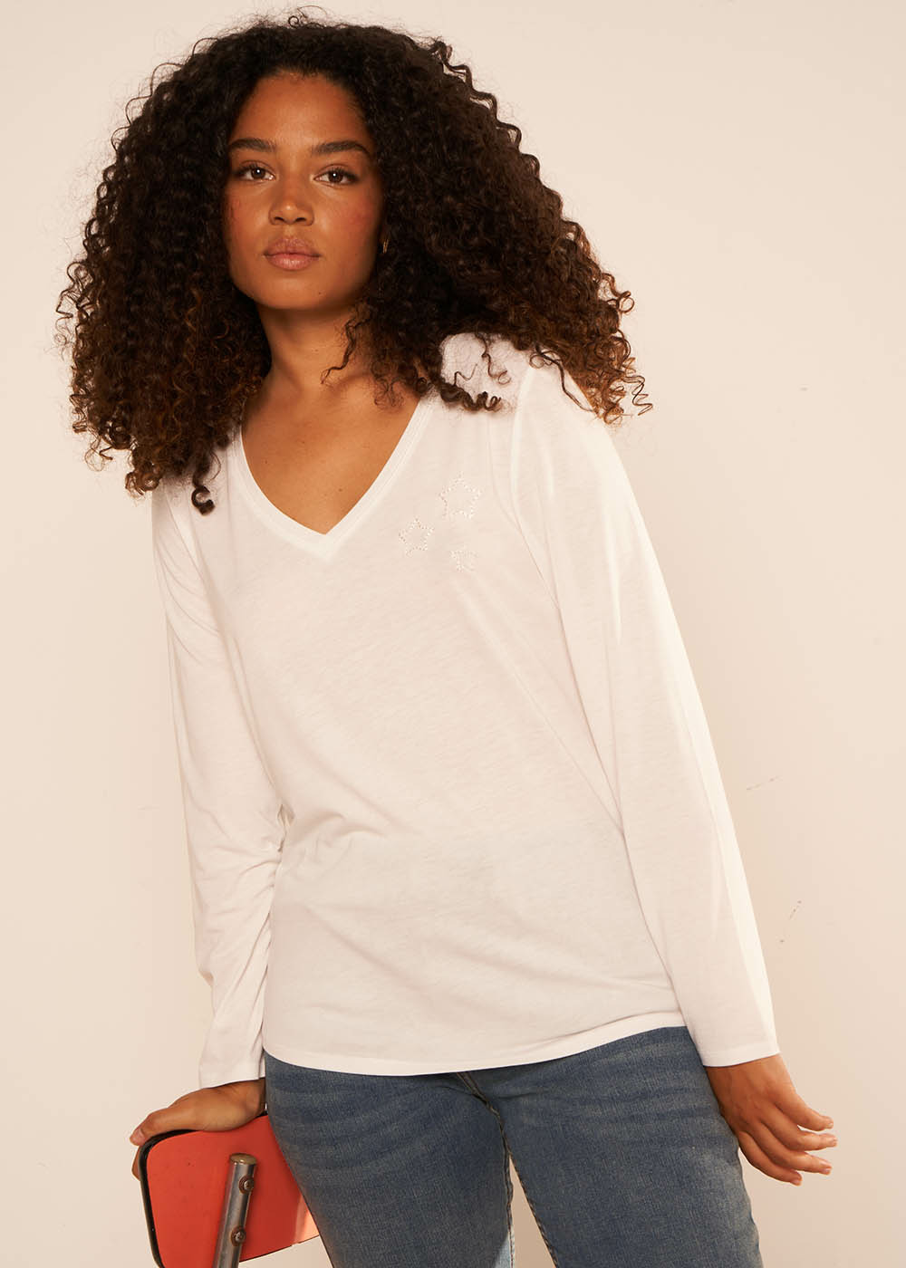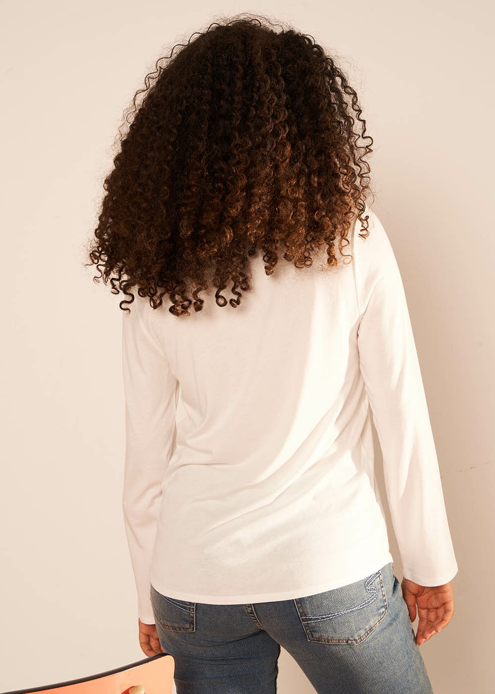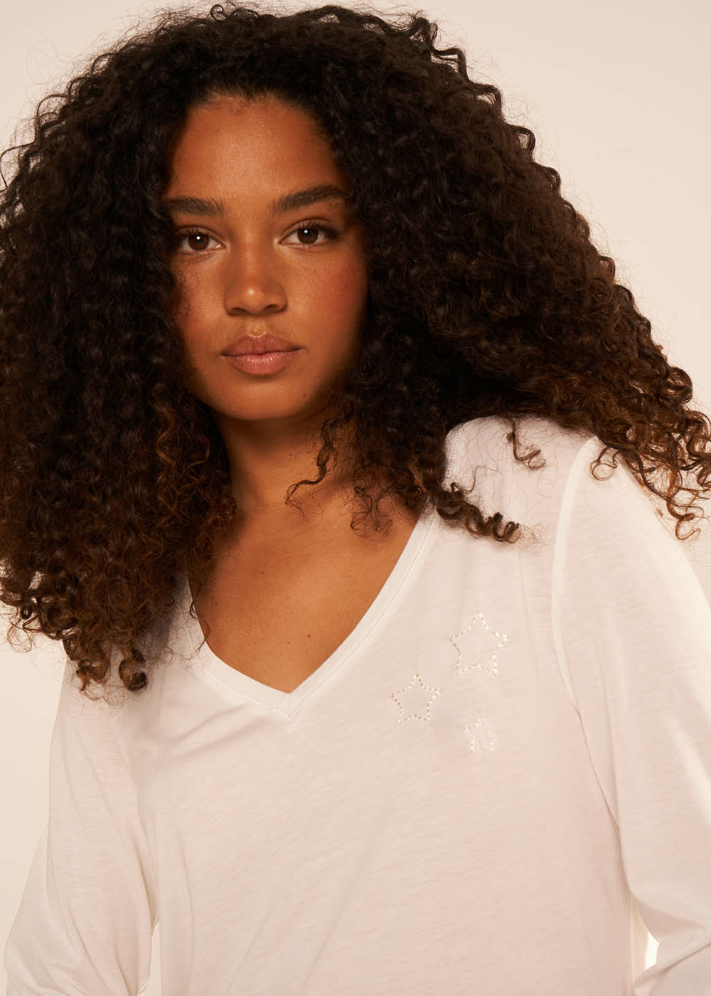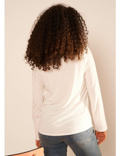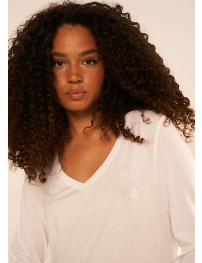 Le tee-shirt TOLIBEL est un basique qui se démarque par son col rond flatteur ses manches longues et son étoile cousue qui ajoutent une touche subtile d'éclat à la pièce.Avec son design simple et élégant il peut être associé à diverses tenues pour différentes occasions. Le col rond offre une esthétique classique.