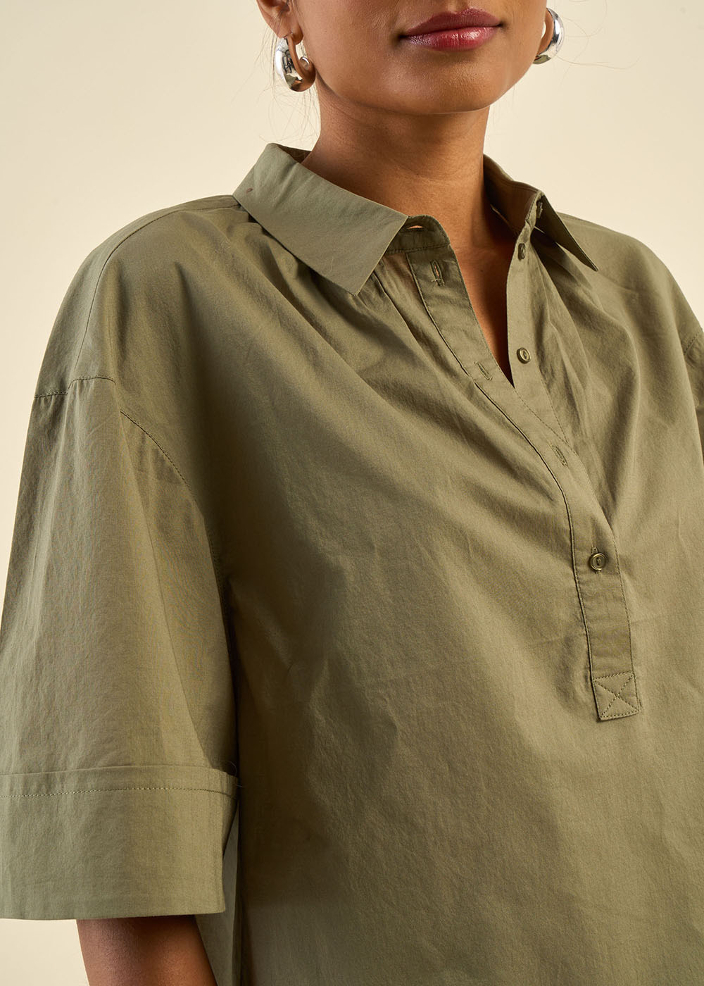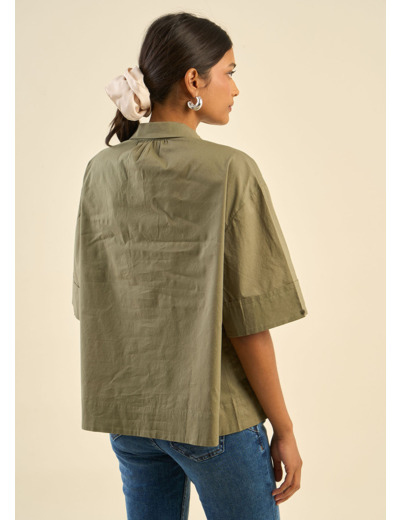 Le top CHELSIA allie confort et style avec son col polo délicatement froncé, apportant une touche originale et élégante. Confectionné en 100% coton, il offre une sensation de douceur tout au long de la journée. Ses manches courtes avec gros revers et sa coupe ample en font une pièce légère et fluide. Le détail des fronces au niveau du pied de col ajoute une note subtile et féminine. Il se porte facilement avec un jean pour un look à la fois simple et élégant.
