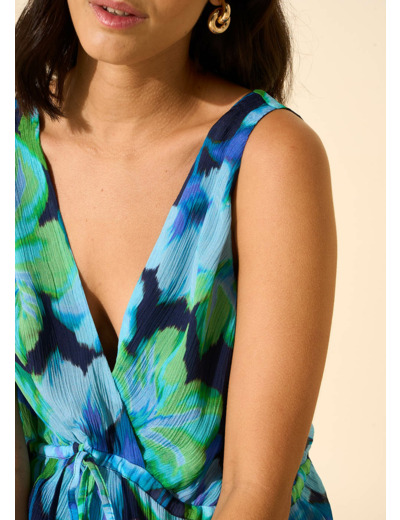 Le top TOBELINA orné d'imprimés vibrants est sans manches avec un décolleté en V flatteur. Il est resserré sous la poitrine grâce à des liens ajustables créant une silhouette féminine et élégante. Sa coupe fluide au niveau du bas offre une sensation de légèreté et de mouvement parfait pour les journées estivales. Associez-le avec un pantalon blanc et des sandales pour un look estival chic et féminin.
