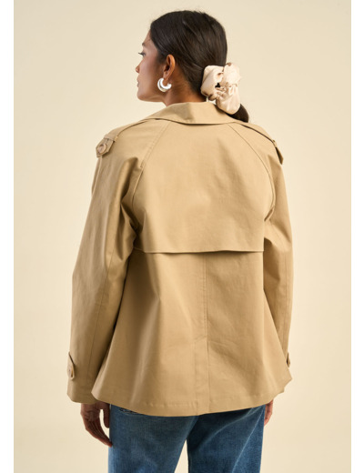 Le trench VANELO revisite un classique avec modernité et élégance. Sa coupe courte et structurée met en valeur la silhouette, tandis que son double boutonnage et ses épaulettes lui apportent une allure affirmée. Les pattes de serrage aux poignets ajoutent une touche de caractère, et les poches inclinées allient style et fonctionnalité. Son intérieur est doublé d’un tissu à fines rayures, ajoutant une note raffinée. Confectionné dans une matière souple et agréable, il est idéal pour la mi-saison.