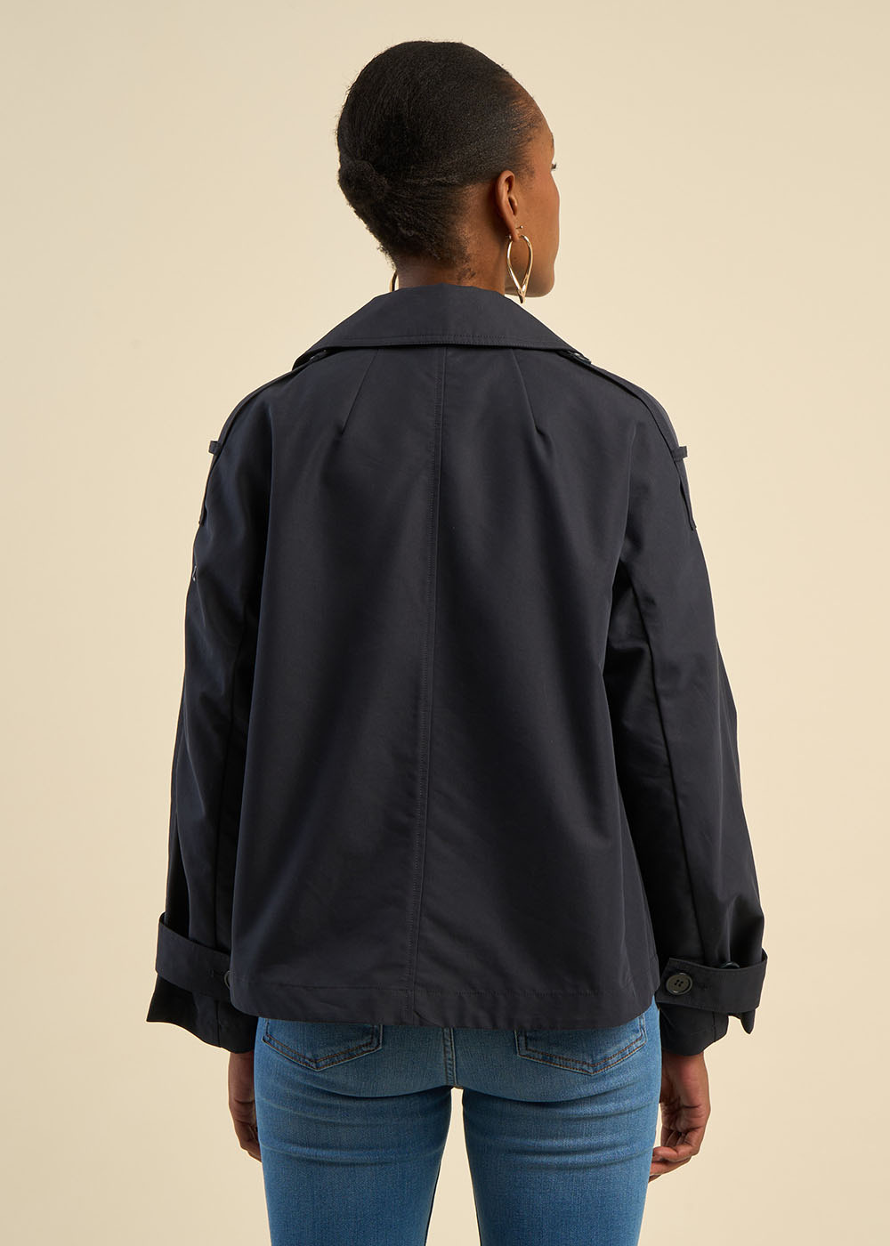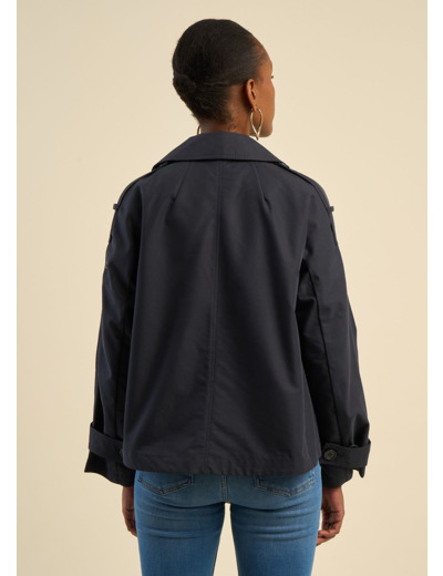 VELIZA est un trench court en coton à la coupe large et évasée, offrant à la fois confort et allure moderne. Sa silhouette structurée et ses détails raffinés en font une pièce élégante, parfaite pour la mi-saison.