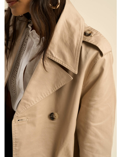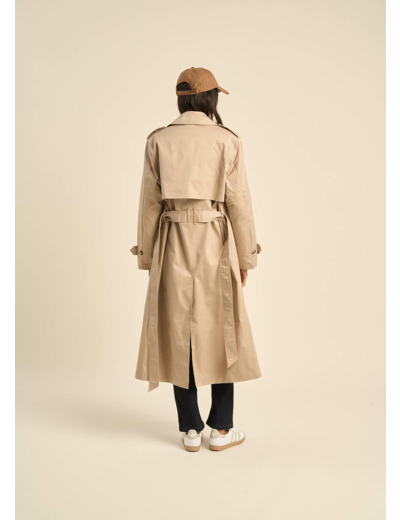Découvrez l'élégance intemporelle du trench long VEKNA. Doté d'un col à revers large, d'une ceinture à la taille et de poches passepoilées en biais, il sublime votre silhouette. Les épaulettes et les lanières de serrage aux poignets ajoutent une touche de sophistication, tandis que le bas volet au dos et le boutonnage croisé à l'avant complètent ce chef-d'œuvre de style. Adoptez ce trench pour une allure chic et raffinée en toute saison.