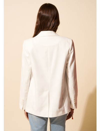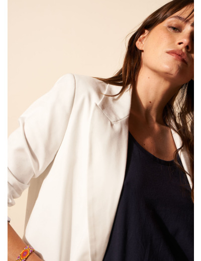 Une veste de tailleur au look indémodable ! La VIBIS dispose d'une coupe droite finement ajustée celle-ci se ferme par 1 bouton manches longues poches passepoils. Ce tailleur se portera tout autant avec un pantalon de tailleur qu'avec un short ou un jean.