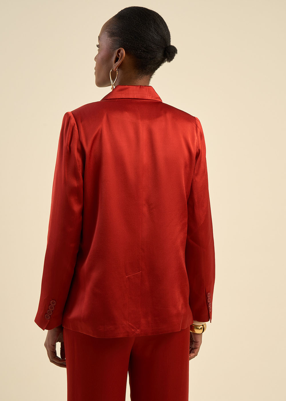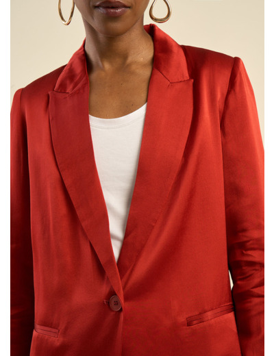 La veste VATINY, en satin fluide et raffiné, est l’incarnation du chic moderne. Sa coupe droite et son tissu élégant en 100 % viscose en font une pièce idéale pour les tenues habillées. Portée avec le pantalon PATY, elle compose un ensemble sophistiqué, tandis qu'associée à un pantalon large, elle crée une silhouette fluide et tendance. Entièrement doublée et dotée d’une fente discrète au dos, elle allie confort et élégance pour s’adapter à toutes les occasions.