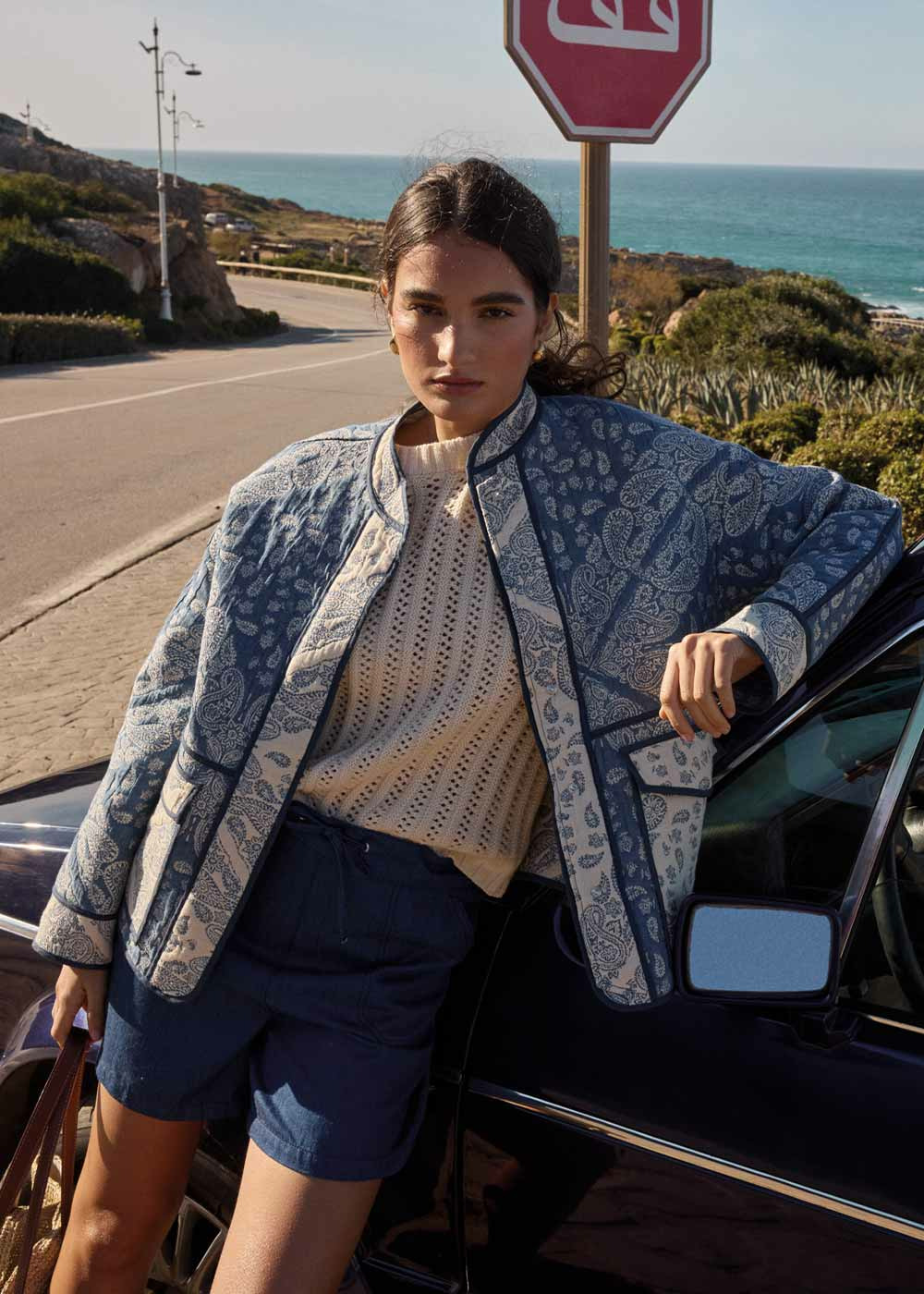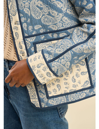 Veste jacquard motif bandanaCol mao et épaules tombantesPattes de boutonnage cachéesPoches à rabat pratiquesFinition biais contrasté| Marque | sud express |