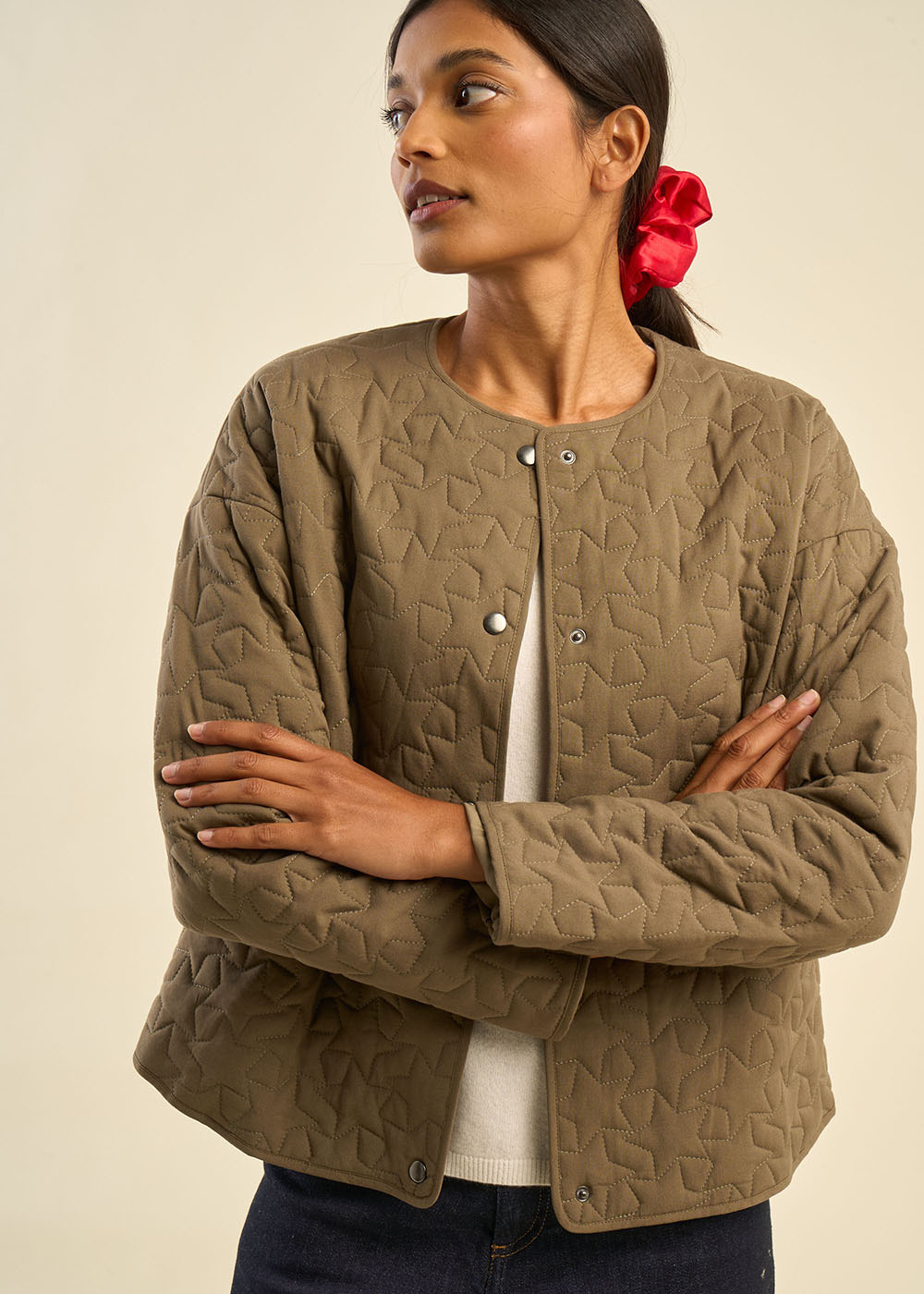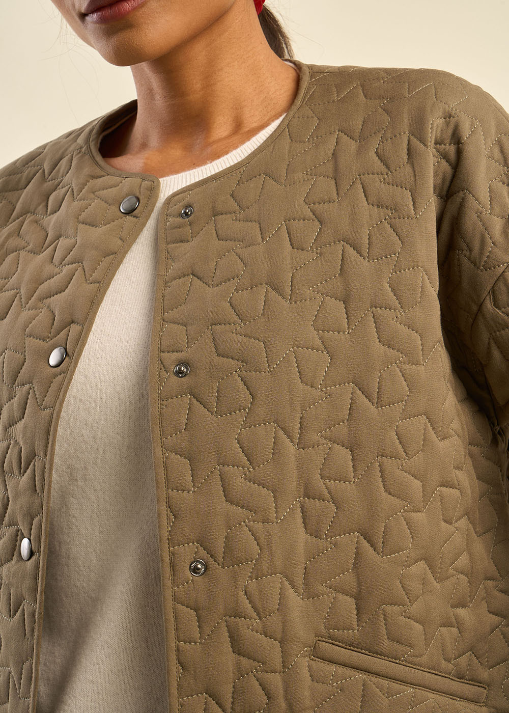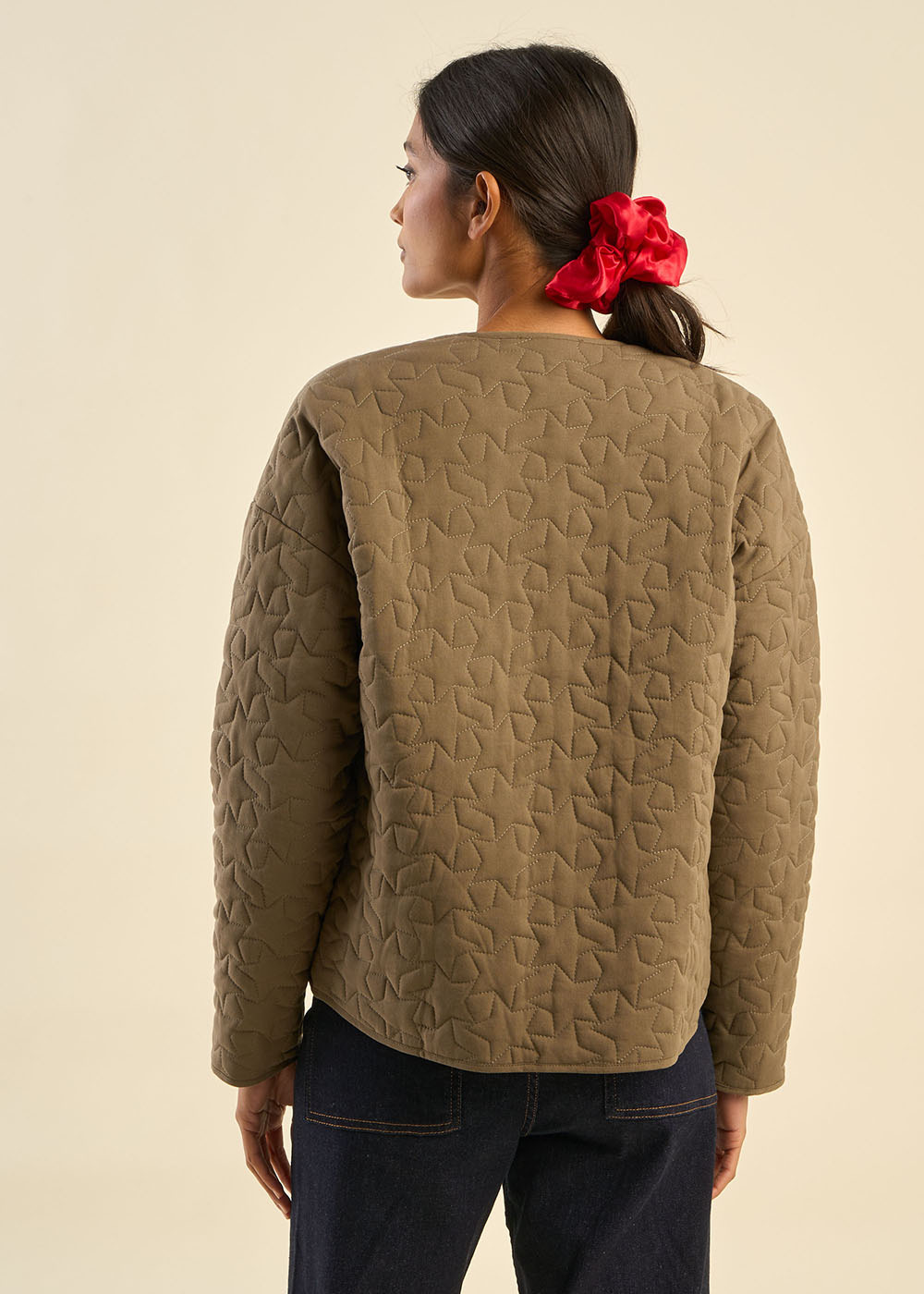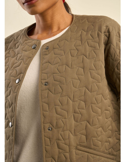 La veste VETOILE allie légèreté et modernité, avec son matelassage délicat au motif étoilé qui lui confère une allure unique. L'effet liquette, avec une courbe élégante sur les côtés, offre une silhouette contemporaine et flatteuse. Les manches droites et l’encolure ronde sans col ajoutent un fini minimaliste, parfait pour une allure décontractée-chic. Une pièce polyvalente, idéale pour rehausser vos tenues quotidiennes tout en restant élégante.