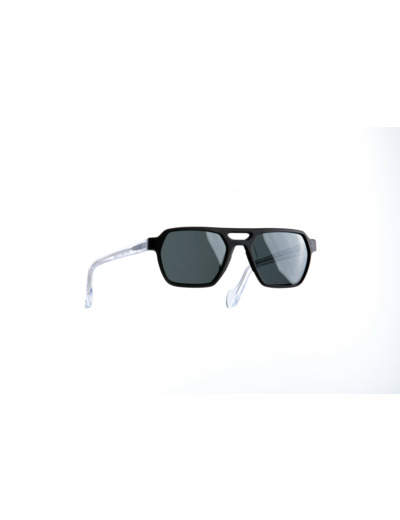 Face en frittage de polyamide noir, branches en acétate cristal, charnière flex pour une flexibilité accrue. Verres minéraux gravés “Brunetti” gris avec traitement anti-reflet interne, très résistants aux rayures. Monture robuste et résistante aux chocs. Protection solaire catégorie UV 3.