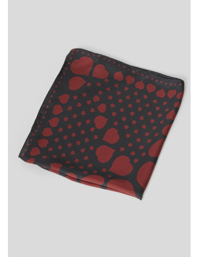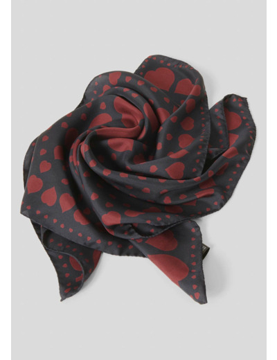 Ce joli carré en 100% soie couleur bleu nuit imprimé à cœurs bordeaux sera idéal pour apporter une touche de féminité à tous vos looks.