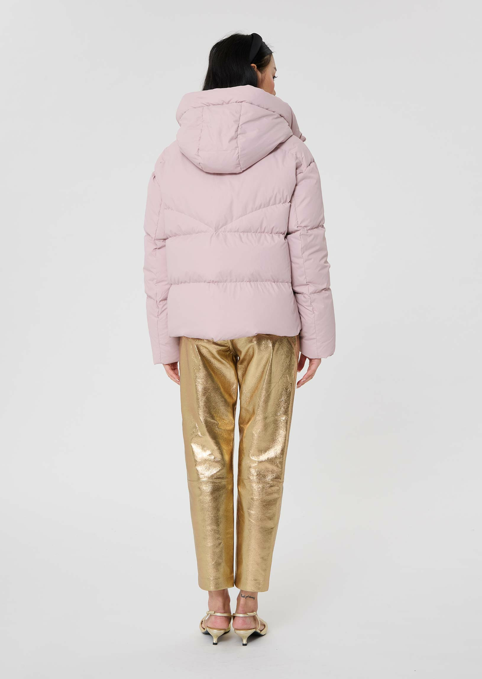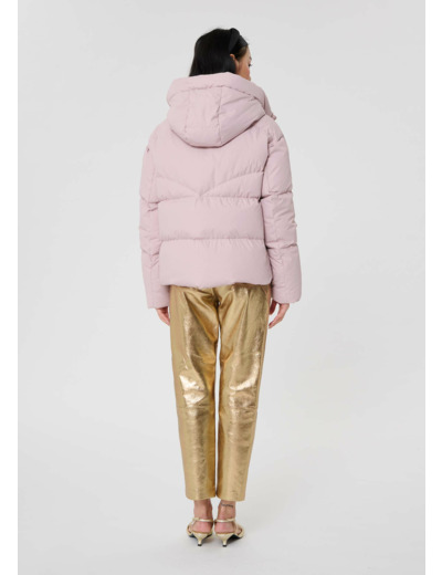 Cette doudoune matte couleur vieux rose possède des manches longues, deux grandes poches à zip aux côtés et un col montant. Elle se ferme au devant par un zip.