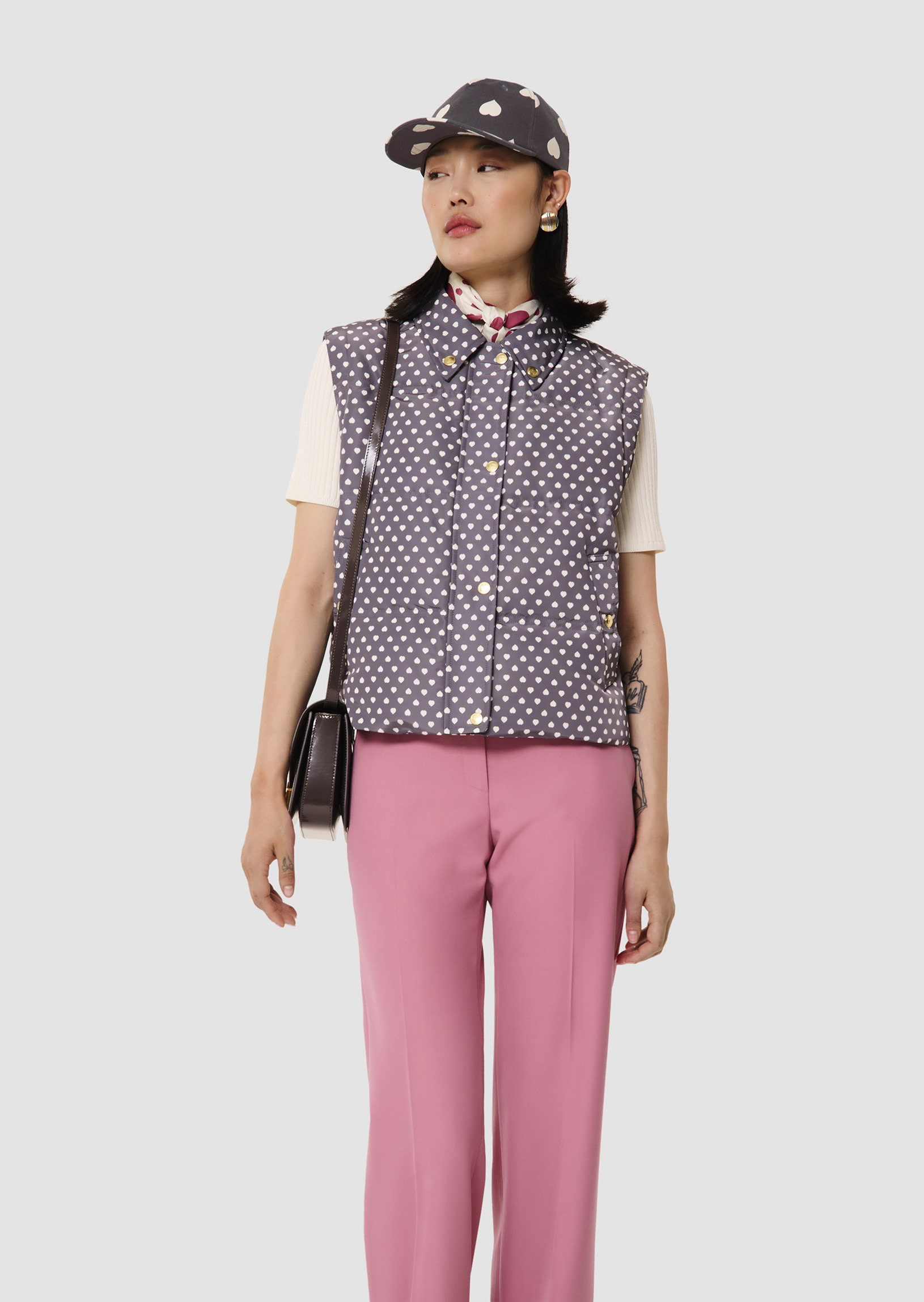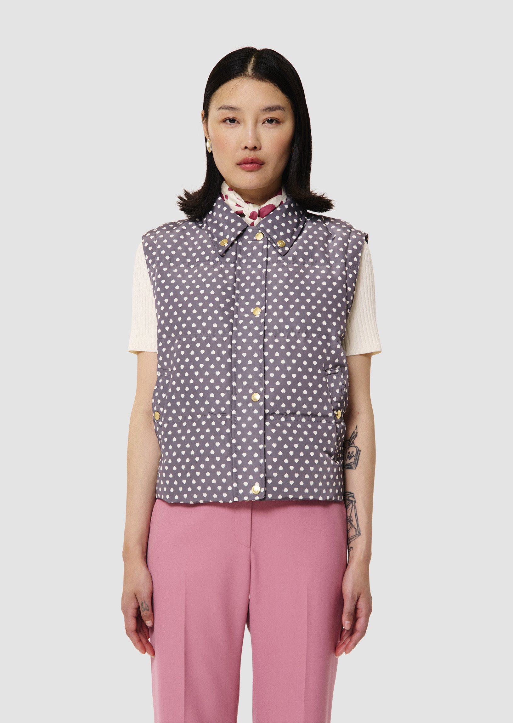 Doudoune Sans Manches Dora Grise Imprimé Mini Coeurs