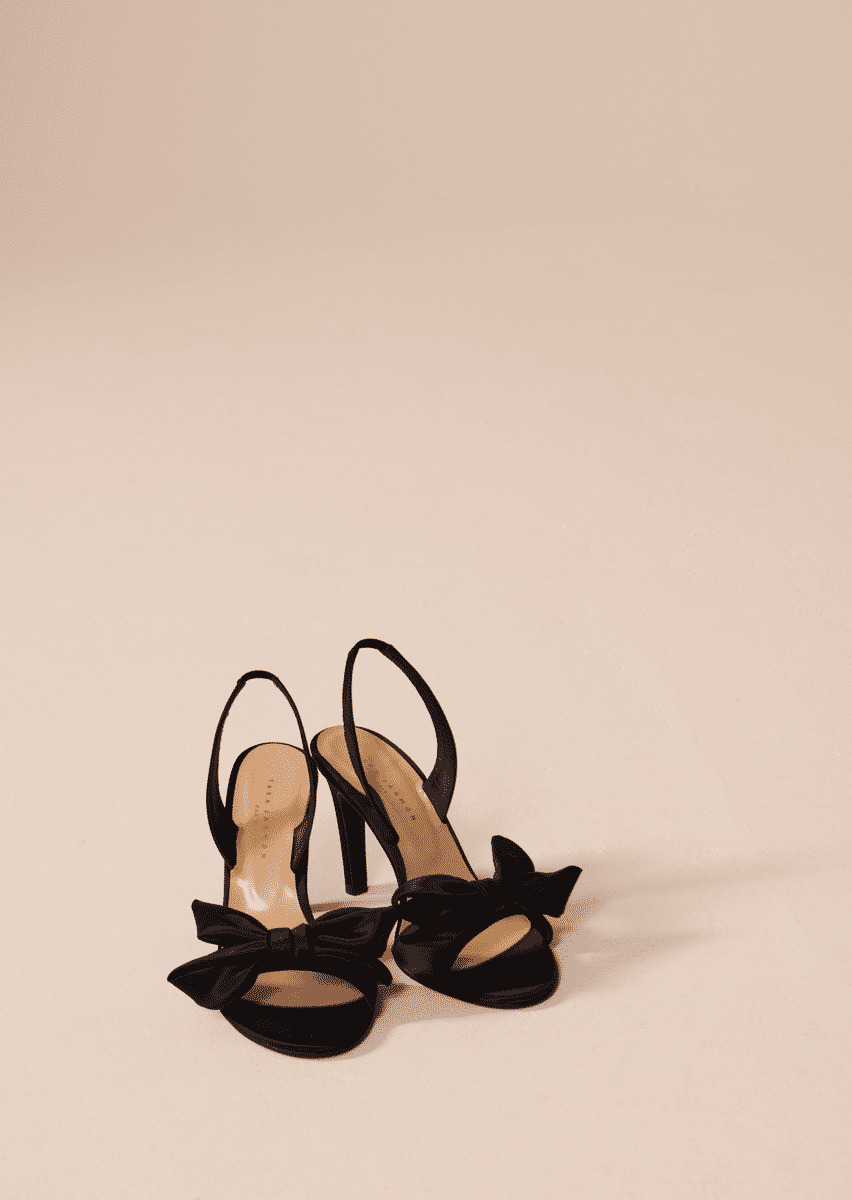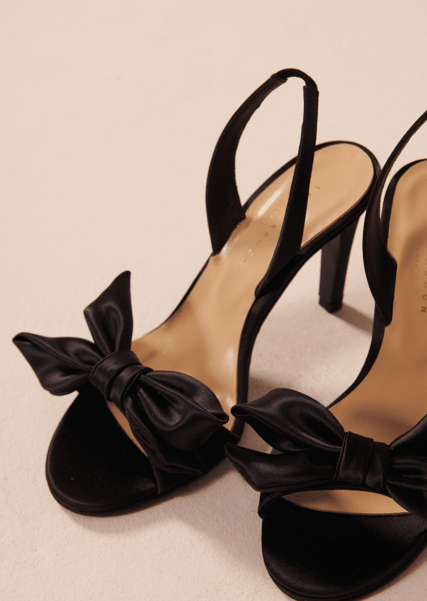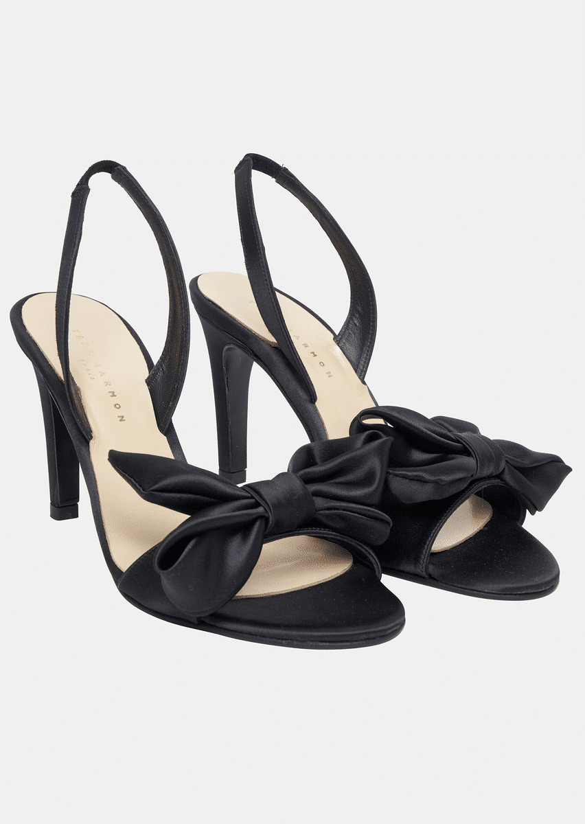 Ces escarpins noirs en satin sont décorés d'un joli nœud au devant. Une fine bride est présente à l'arrière du pied pour maintenir le talon. Talon de 9 cm. Fins et élégants, ils accompagneront tous vos looks du soir.