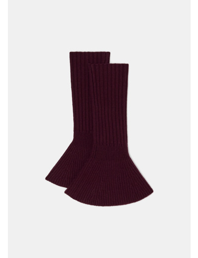 Les gants style manchettes sont de retour cette saison. Ici déclinés en couleur bordeaux, ils sont l'accessoire indispensable de la saison. Entièrement confectionnés en laine mérinos, ils assurent douceur et confort.