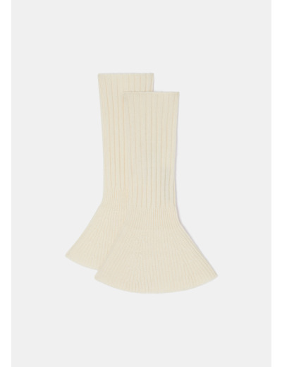 Les gants style manchettes sont de retour cette saison. Ici déclinés en écru, ils sont l'accessoire indispensable de la saison. Entièrement confectionnés en laine mérinos, ils assurent douceur et confort.
