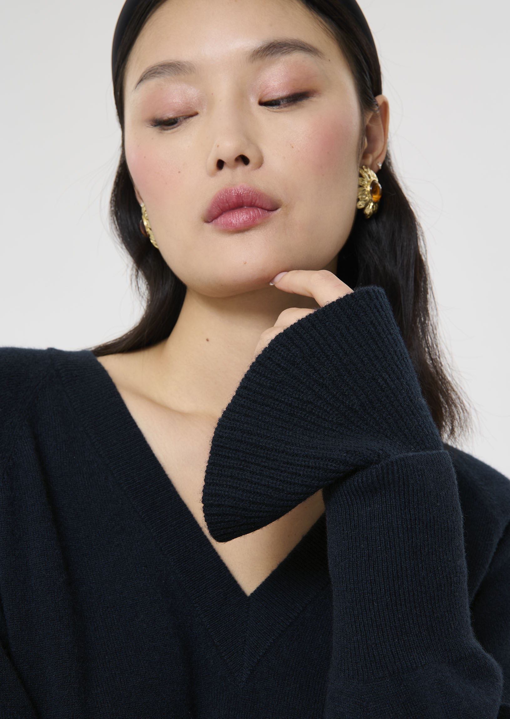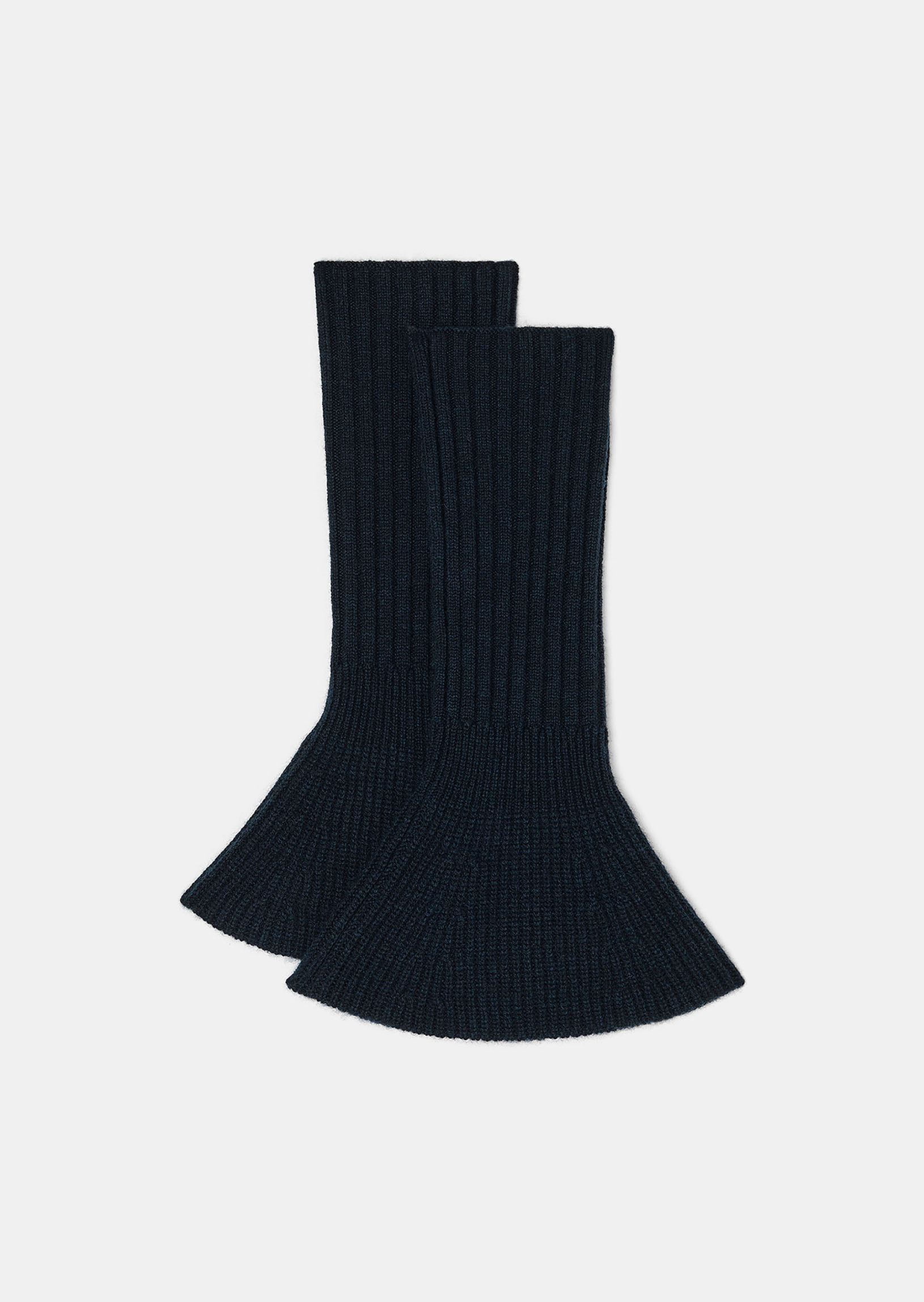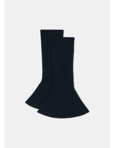 Les gants style manchettes sont de retour cette saison. Ici déclinés en bleu nuit, ils sont l'accessoire indispensable de la saison. Entièrement confectionnés en laine mérinos, ils assurent douceur et confort.