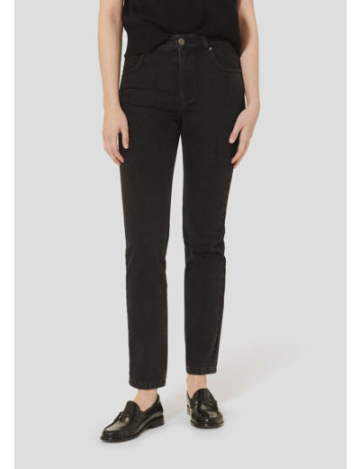 Basique de la garde-robe, ce jean slim noir brut est coupe 7/8. Il a une fermeture zippée et boutonnée et 5 poches.