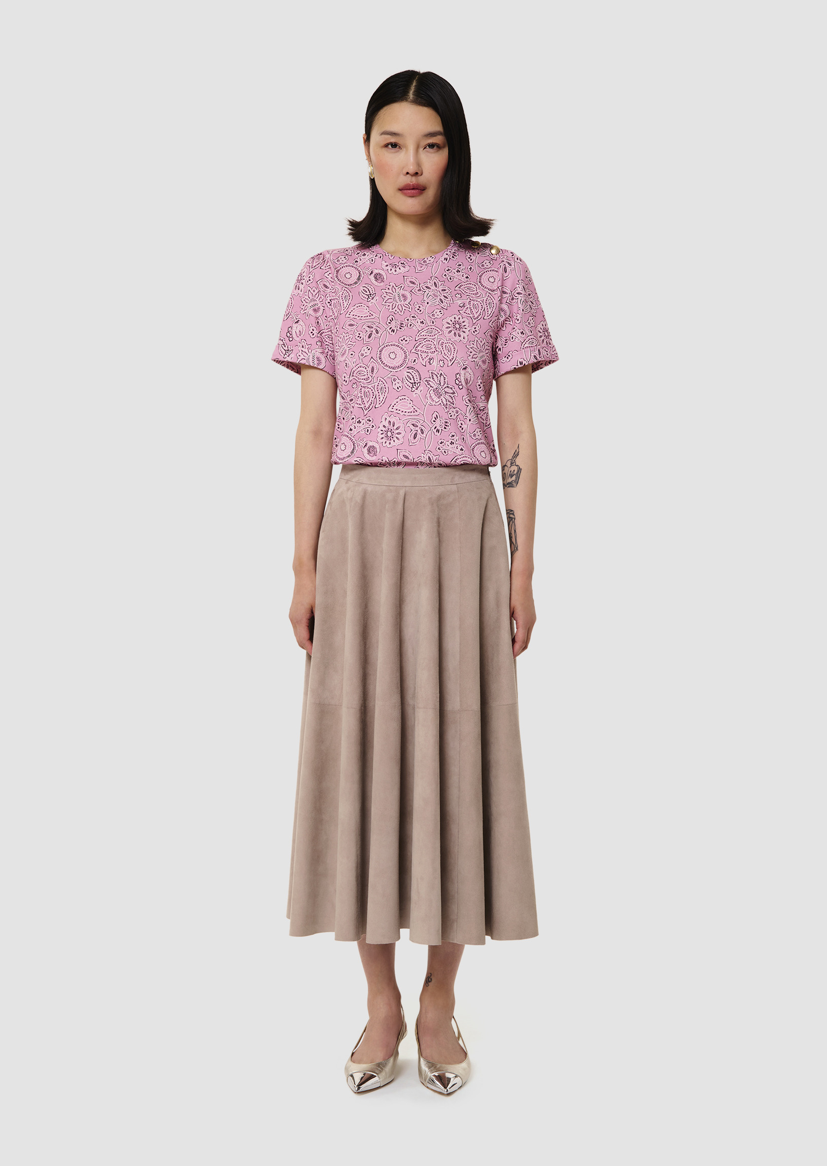 Sublimez votre allure avec cette jupe grise en cuir velours, un incontournable pour une silhouette moderne et affirmée. Son toucher doux et sa coupe élégante incarnent le raffinement à la française signé Tara Jarmon.