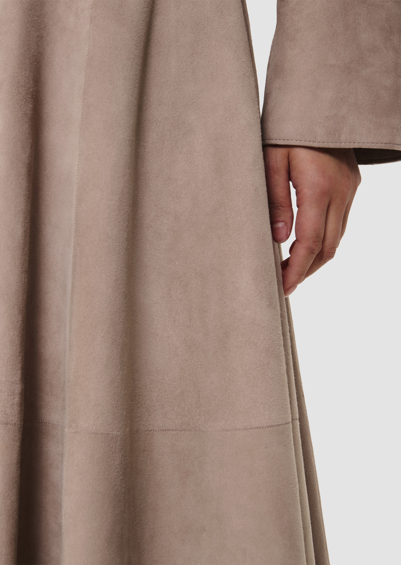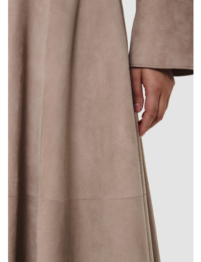 Cette jupe mi-longue en cuir nubuck fin effet velours couleur grise possède une coupe volantée. Sa taille ceinturée et sa coupe fluide lui confèrent un esprit romantique. Fermeture par zip invisible au côté. Pour compléter le look optez pour la veste Victor.