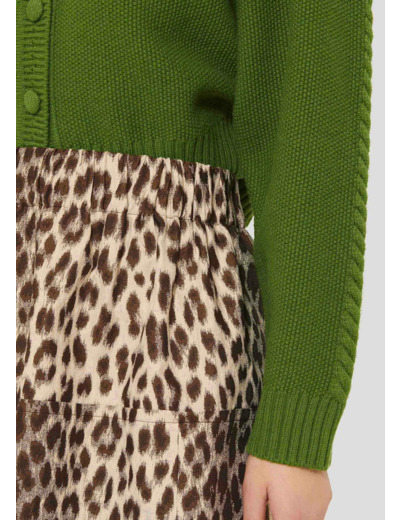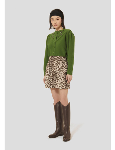 Cette courte jupe cloche est imprimée de notre motif léopard. Sa ceinture est élastiquée permettant une tenue confortable.