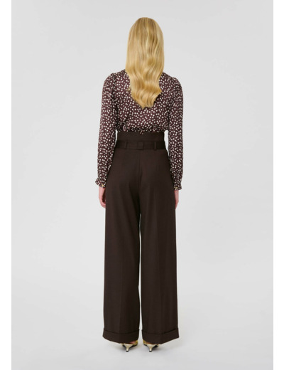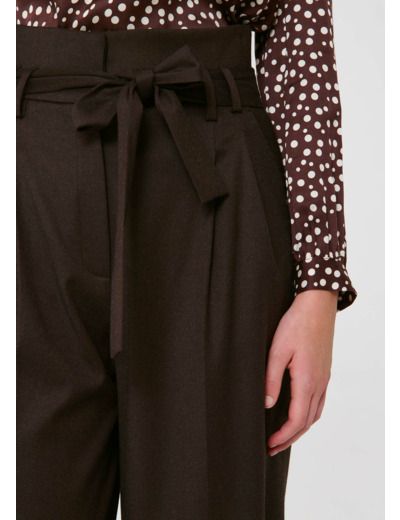 Notre iconique pantalon Pia est de retour en coloris chocolat cette saison. En flanelle, il possède une jambe large et une taille haute marquée d'une ceinture ton sur ton avec de larges poches aux côtés et des revers au bas pour une allure toujours aussi élégante.