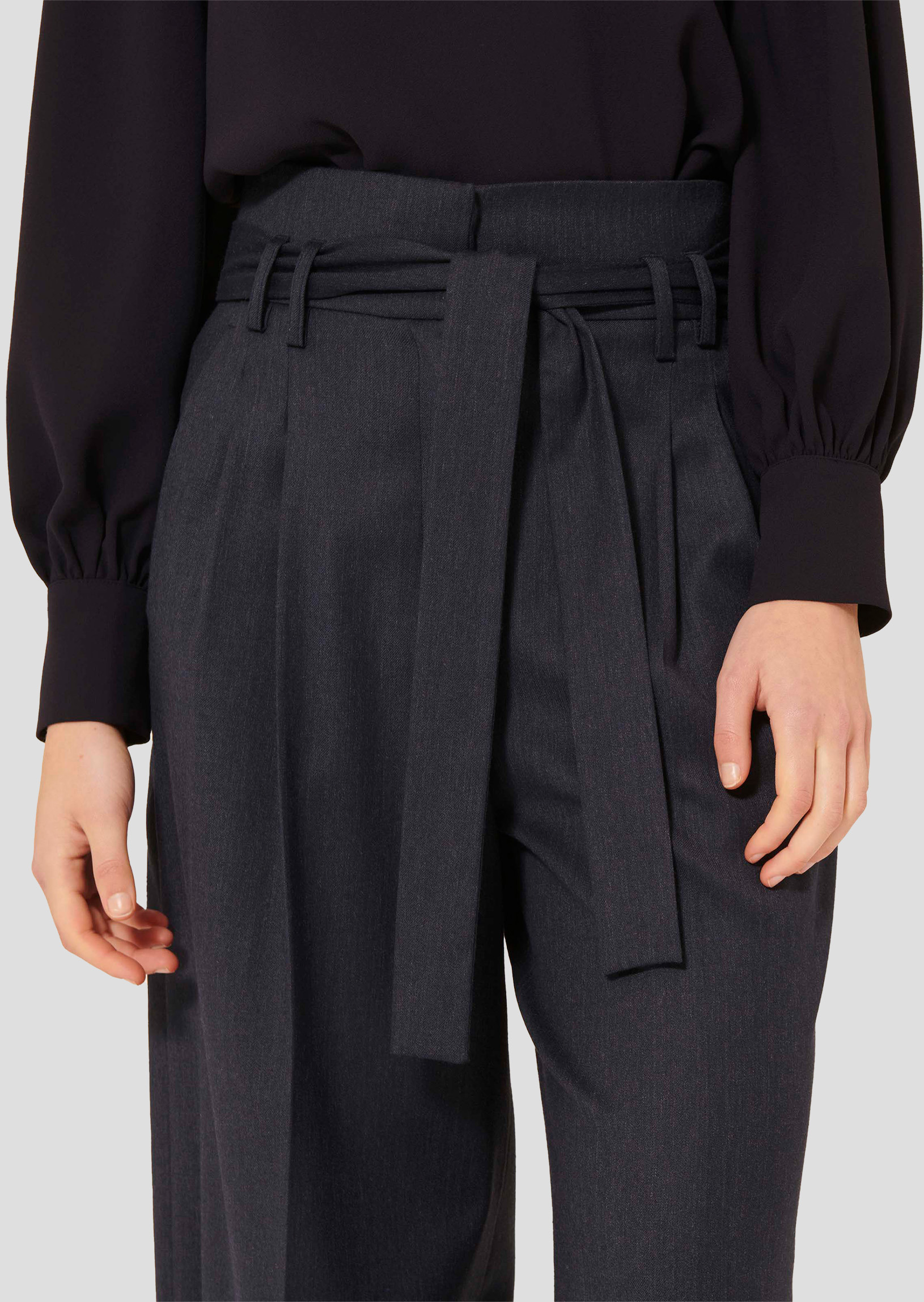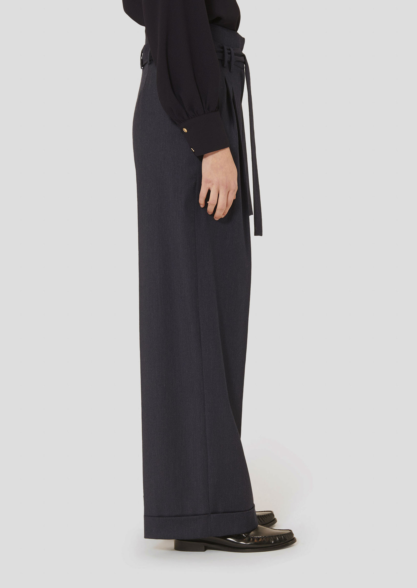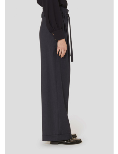 Notre iconique pantalon Pia est de retour en coloris bleu nuit cette saison. En flanelle, il possède une jambe large et une taille haute marquée d'une ceinture ton sur ton avec de larges poches aux côtés et des revers au bas pour une allure toujours aussi élégante.