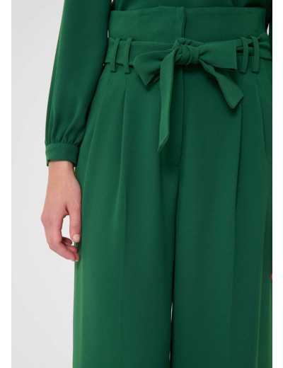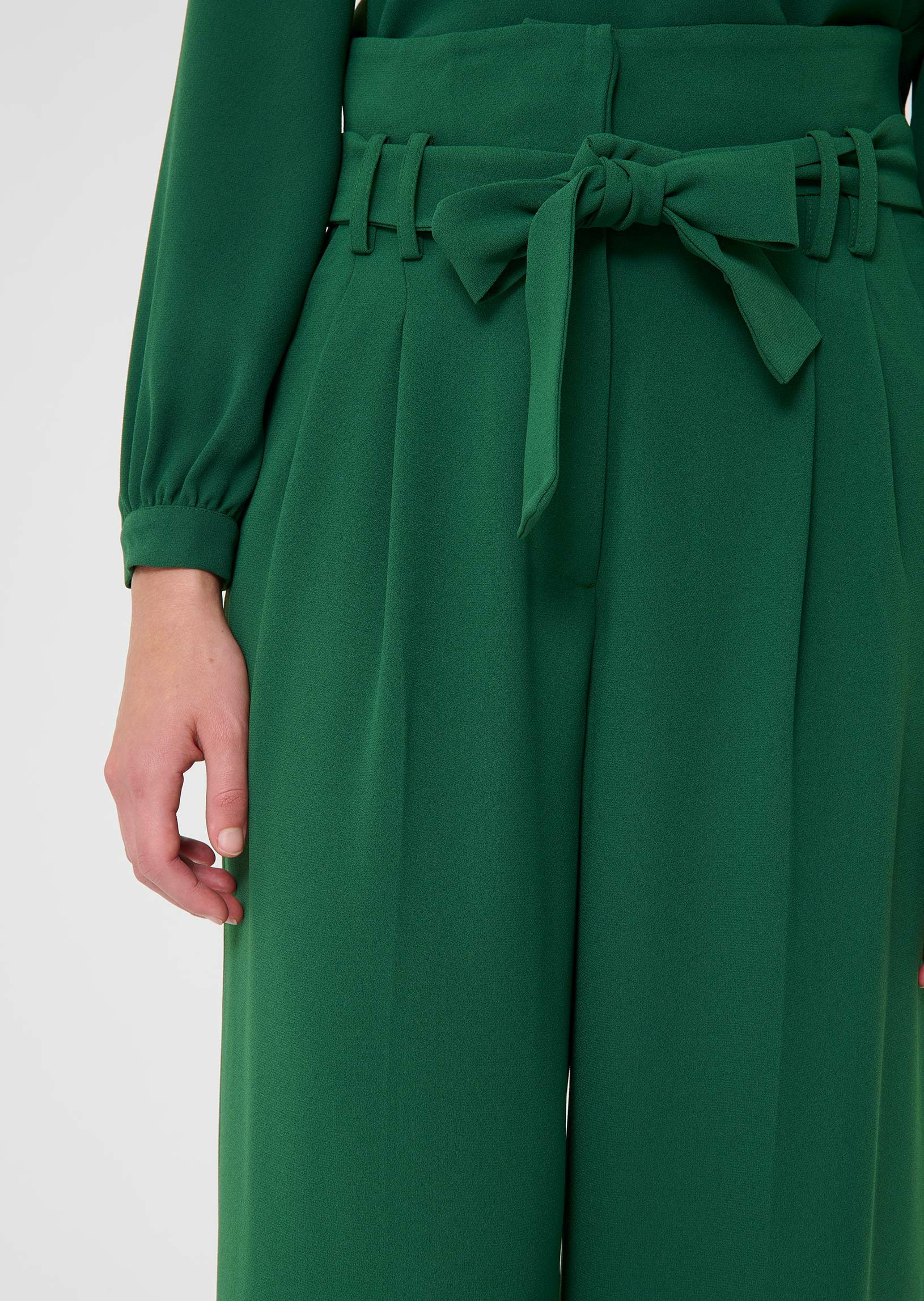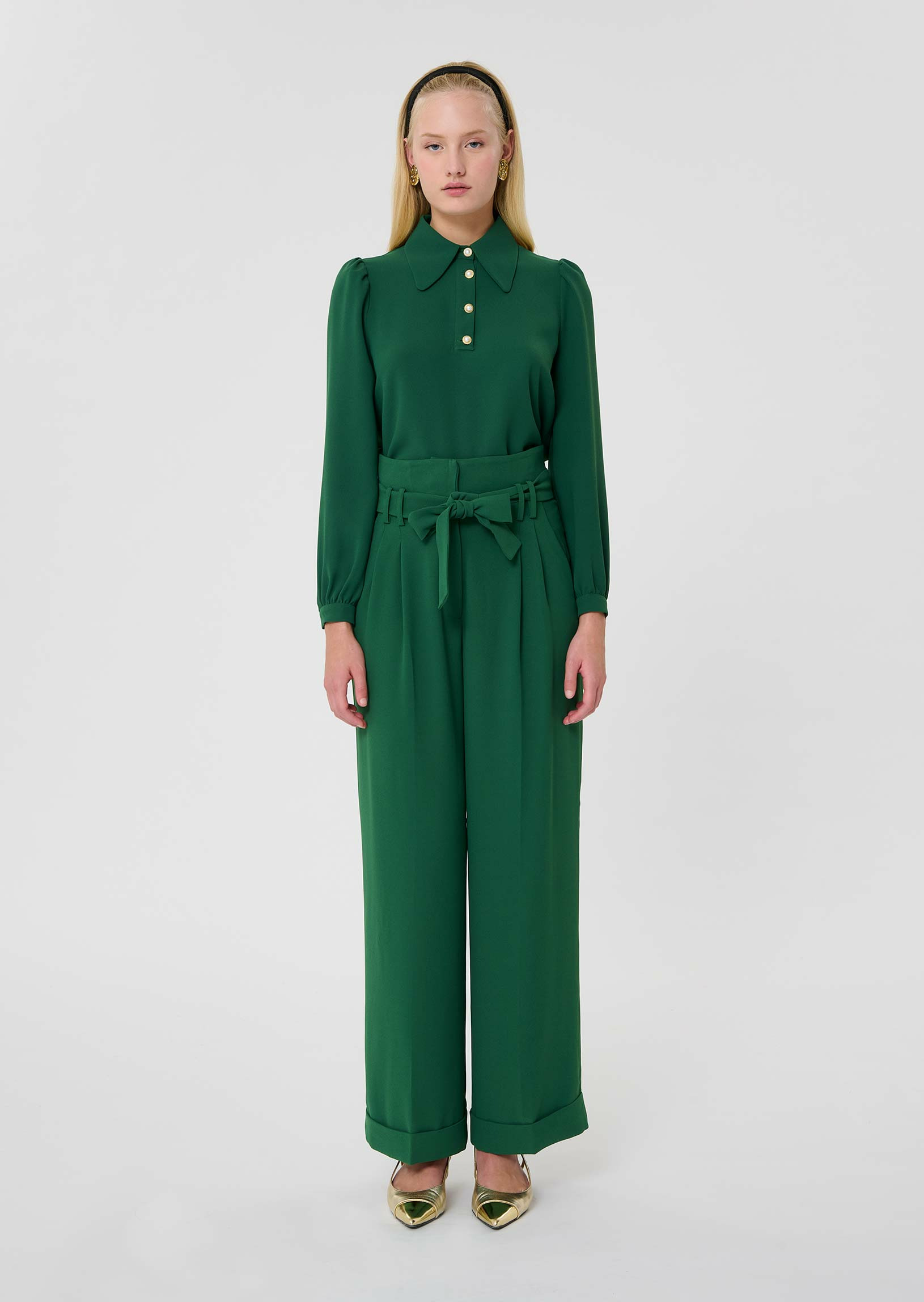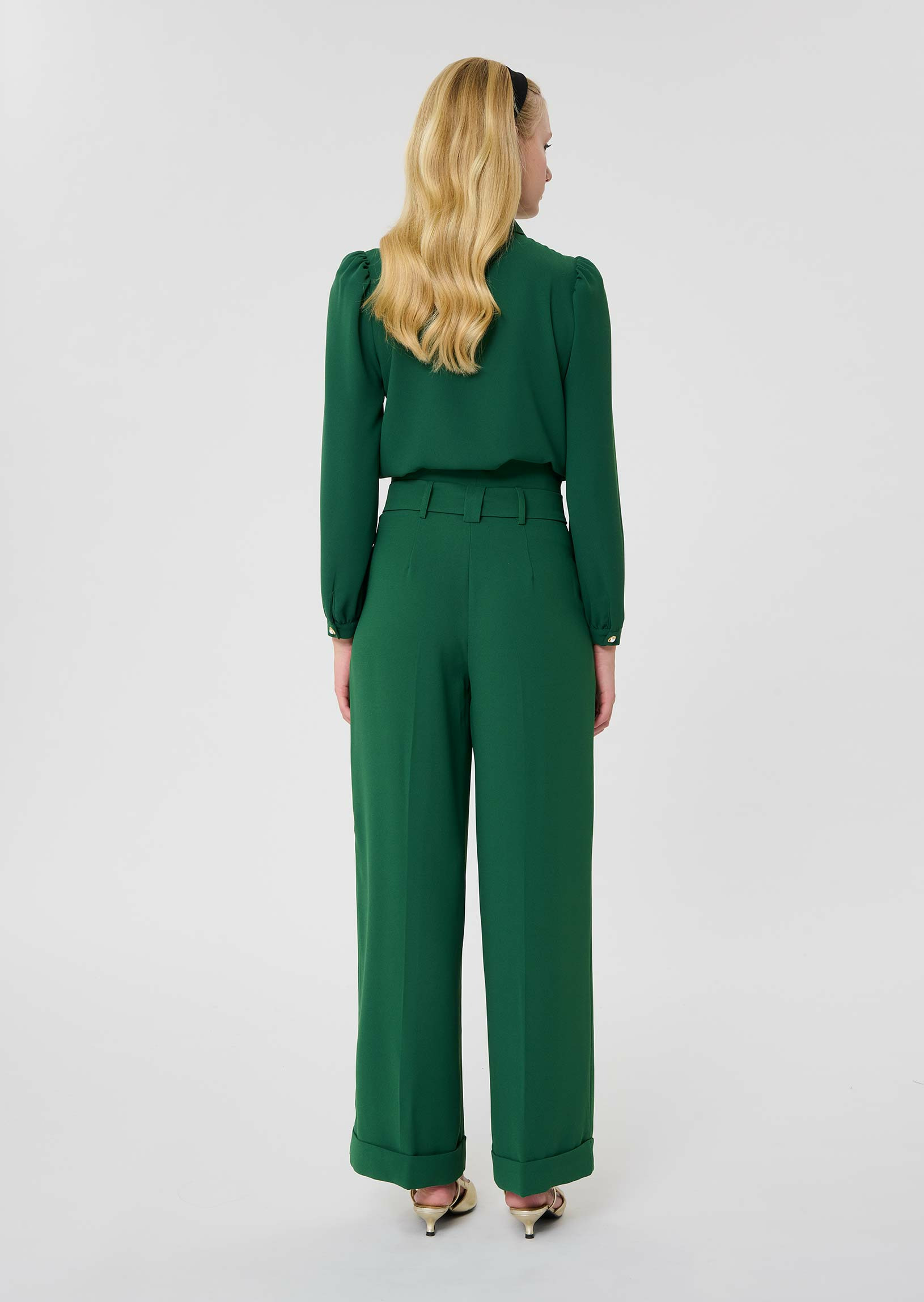 Notre iconique pantalon Pia est de retour en vert cette saison. En crêpe, il possède une jambe large et une taille haute marquée d'une ceinture ton sur ton avec de larges poches aux côtés et des revers au bas pour une allure toujours aussi élégante.