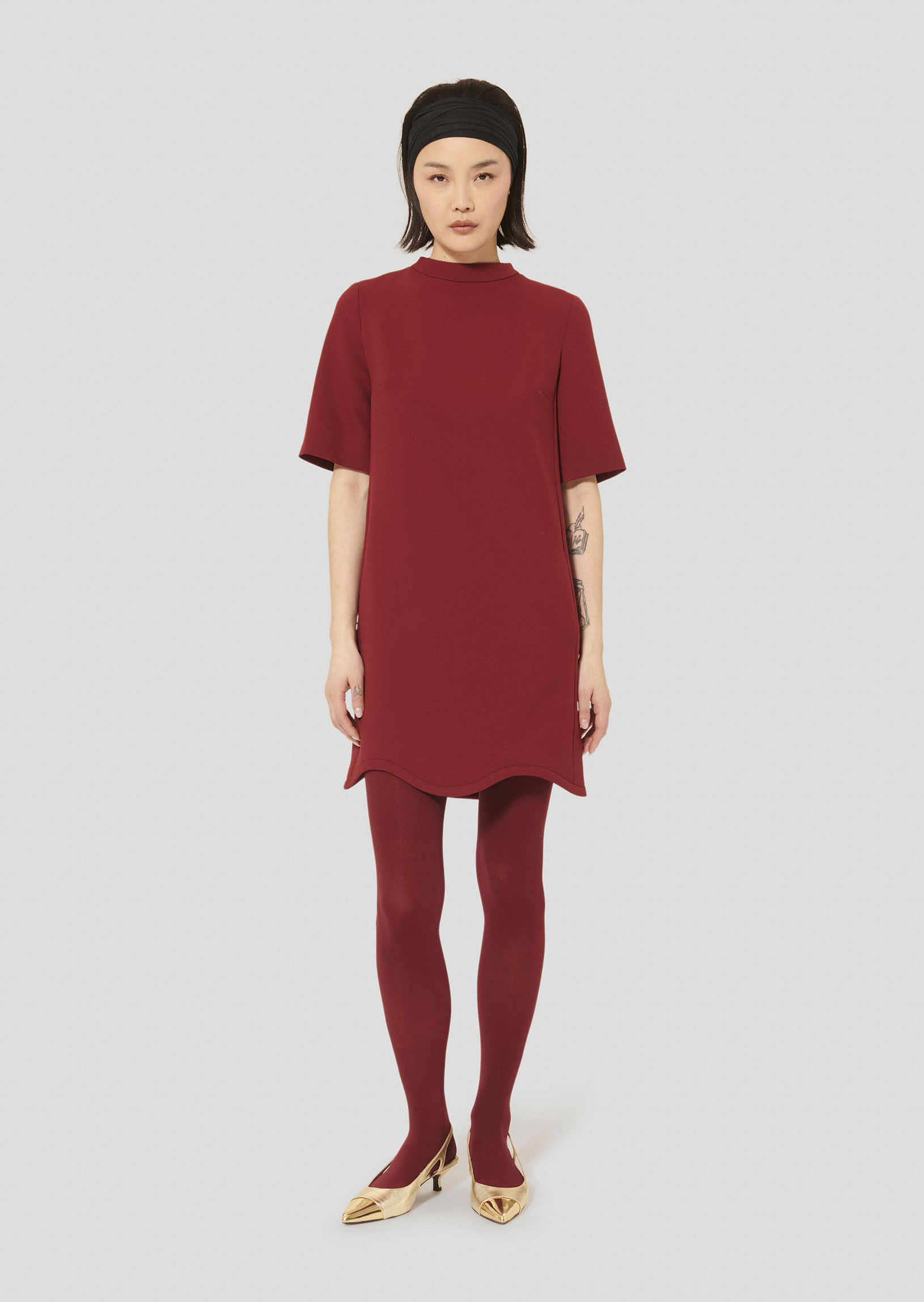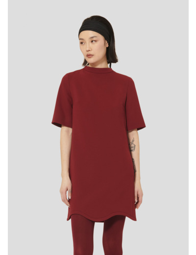Cette courte robe bordeaux en toile double possède un petit col montant et des manches courtes. Sa touche so Tara est apportée par sa finition festonnée lui donnant un esprit preppy.