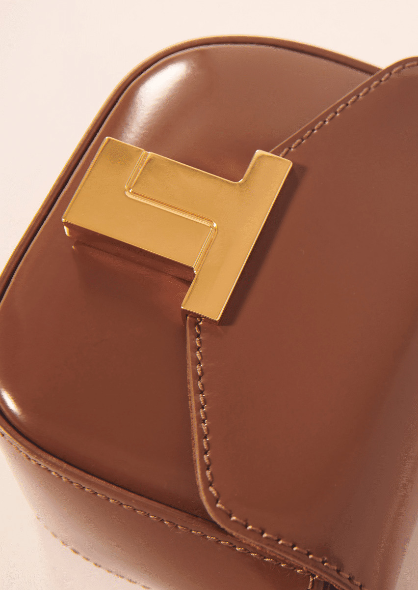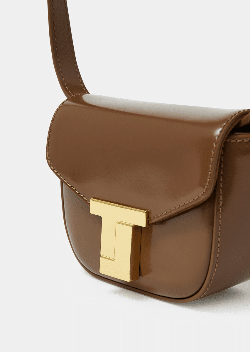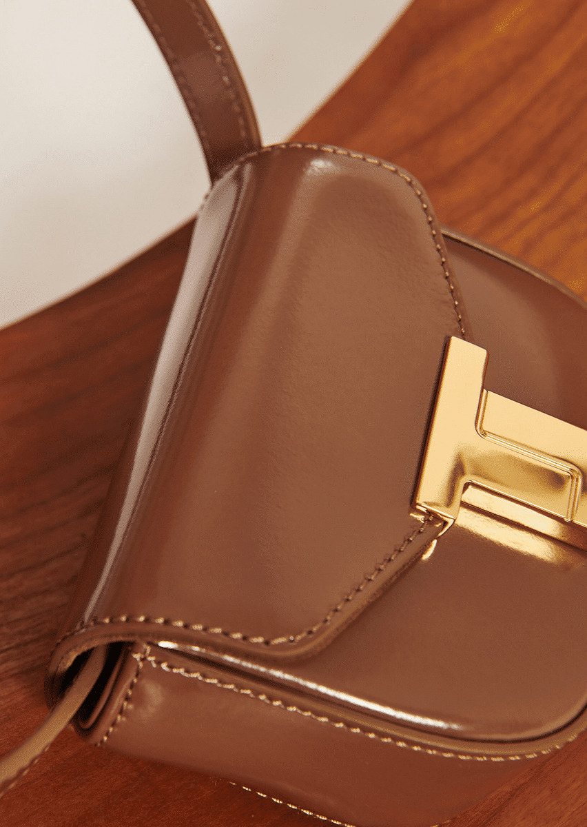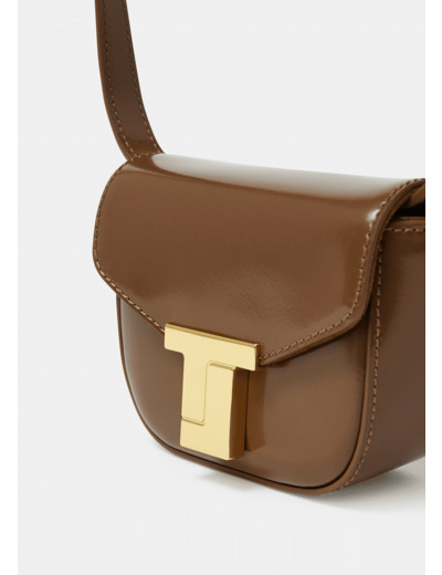 Fait en Italie, cette version mini du sac 8 Bis en couleur taupe est entièrement confectionné en cuir lisse. Il possède une bandoulière assortie amovible et réglable pour vous accompagner partout. Vous trouverez une petite poche à rabat à l'intérieur pour y ranger vos cartes. Fermeture par bouton pression au devant. Son fermoir doré arbore le nouveau monogramme de la maison Tara Jarmon.